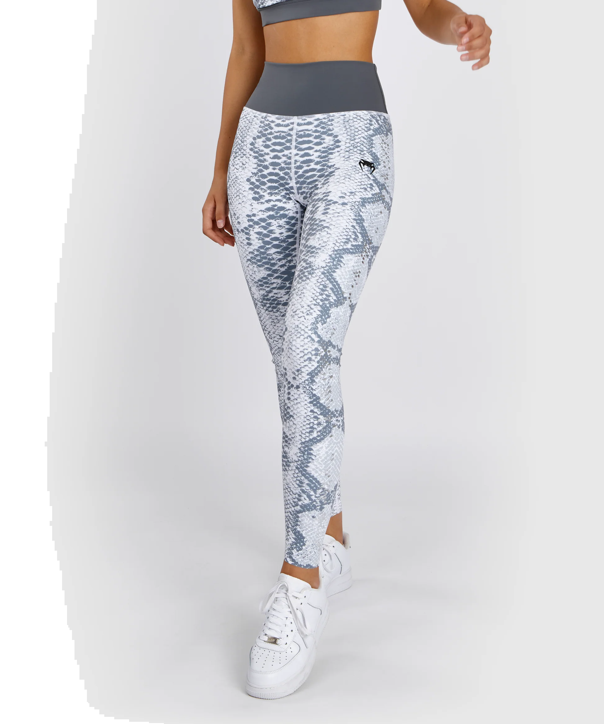 VENUM White Snake紧身裤采用高腰设计,可防止下蹲时滑动。面料柔软轻盈,同时又具备支撑性,可带来丝滑般的裸感体验。灰色高腰细节与同系列运动内衣的细节设计如出一辙。