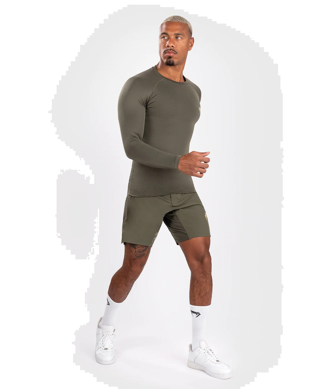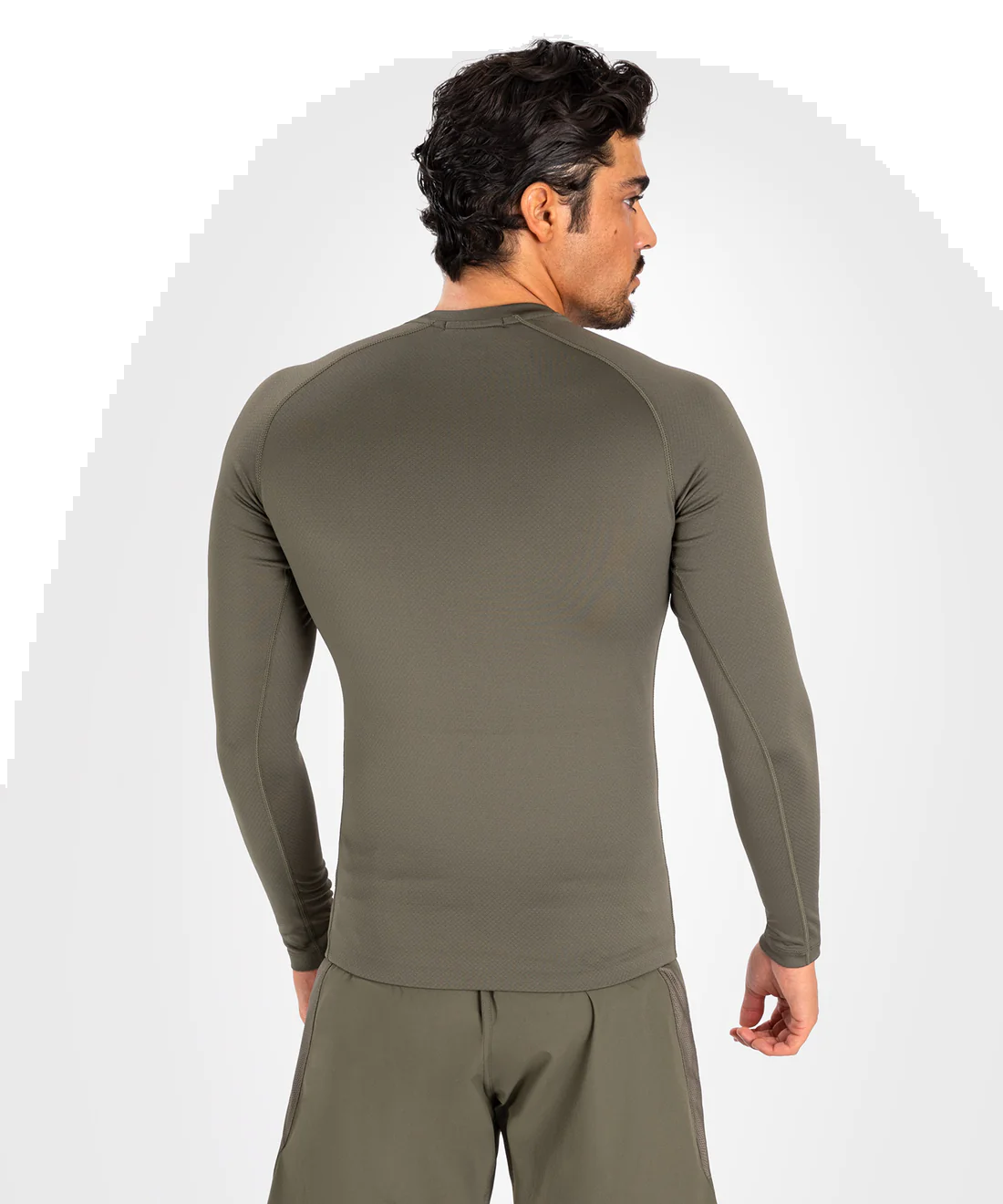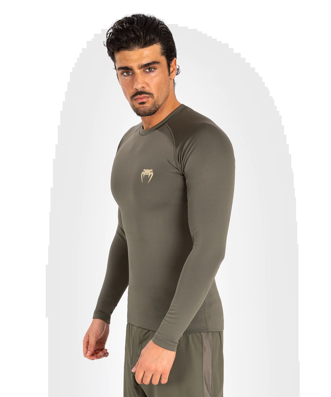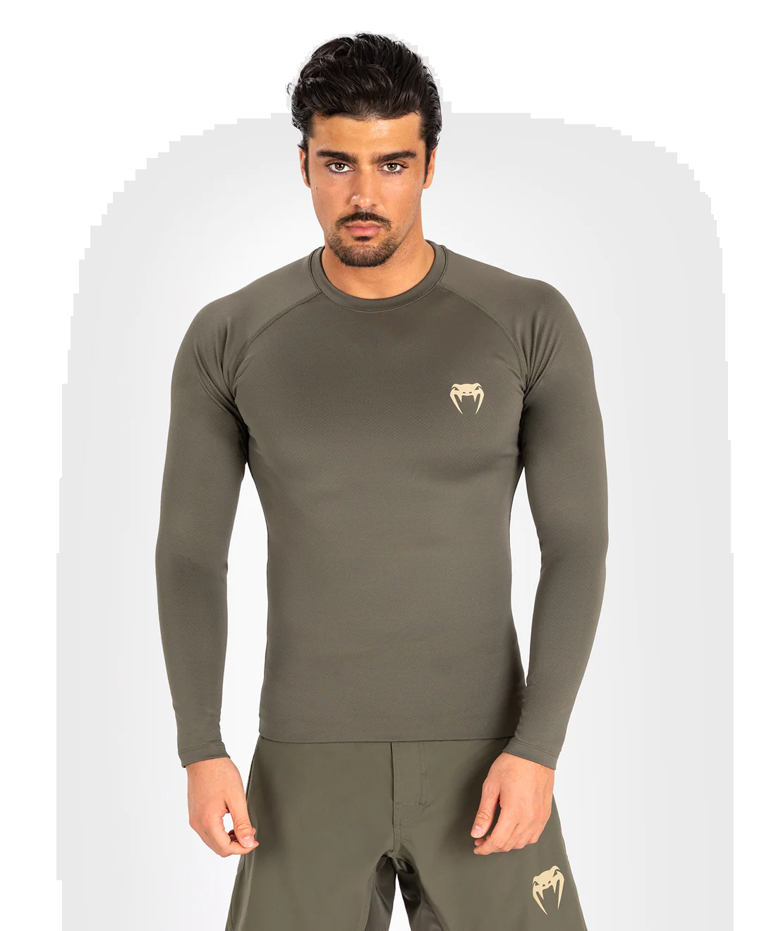 VENUM Contender男士长袖紧身衣专为您在柔术、综合格斗和力量训练中保持舒适和活动自如而设计。带有加固接缝的压缩面料,具有“第二层皮肤”的效果,可降低因摩擦而受伤的风险,同时还能促进肌肉恢复。底部的防滑硅胶条可让这款紧身衣保持在合适的位置,让您专注于运动表现,VENUM 标志细节位胸部。
