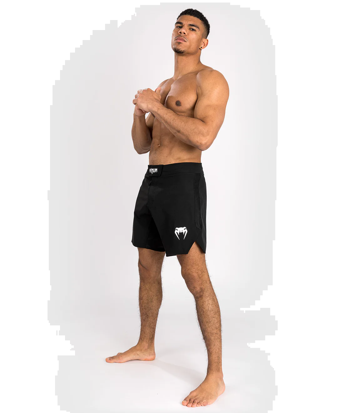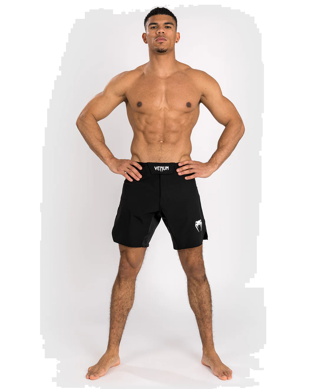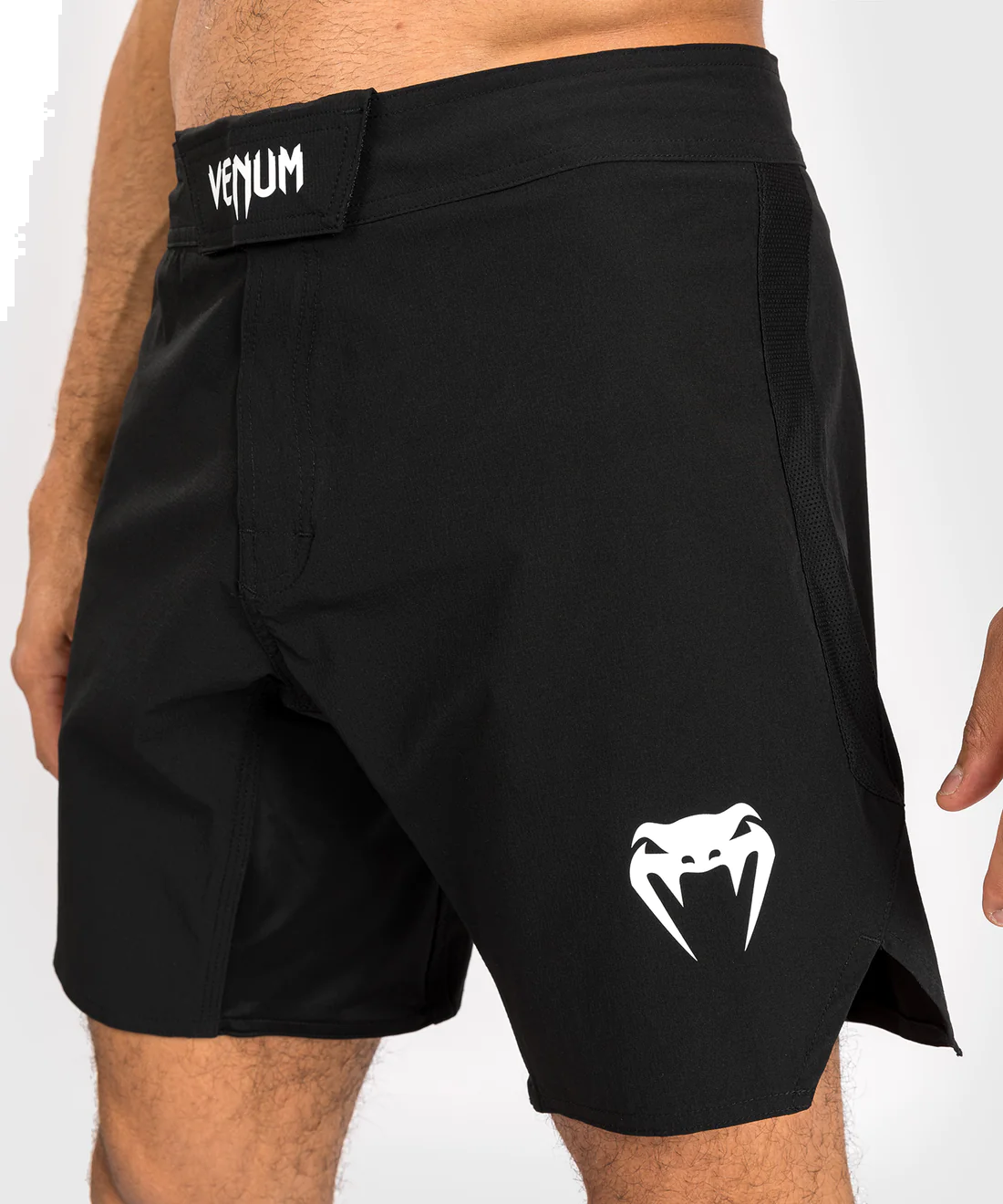 VENUM Contende格斗短裤采用轻质耐用的防撕裂网眼面料,可承受最密集的格斗运动训练。同时,热封的侧边缝和裆部的莱卡面料设计在柔术和综合格斗训练提供了最佳的活动自由度。左大腿和前腰带处有白色 VENUM 徽标细节。