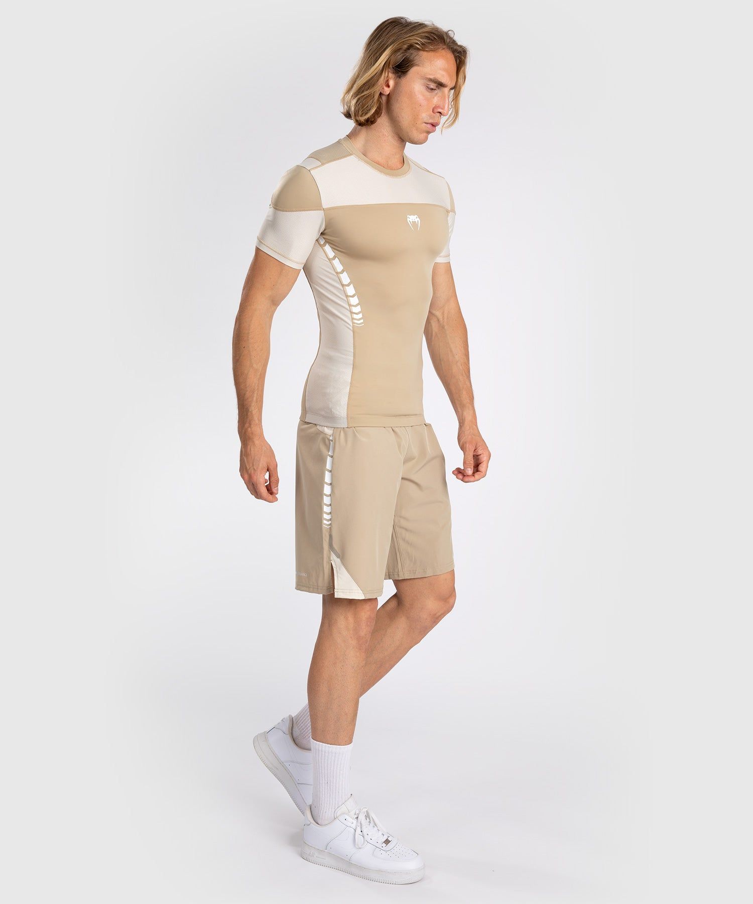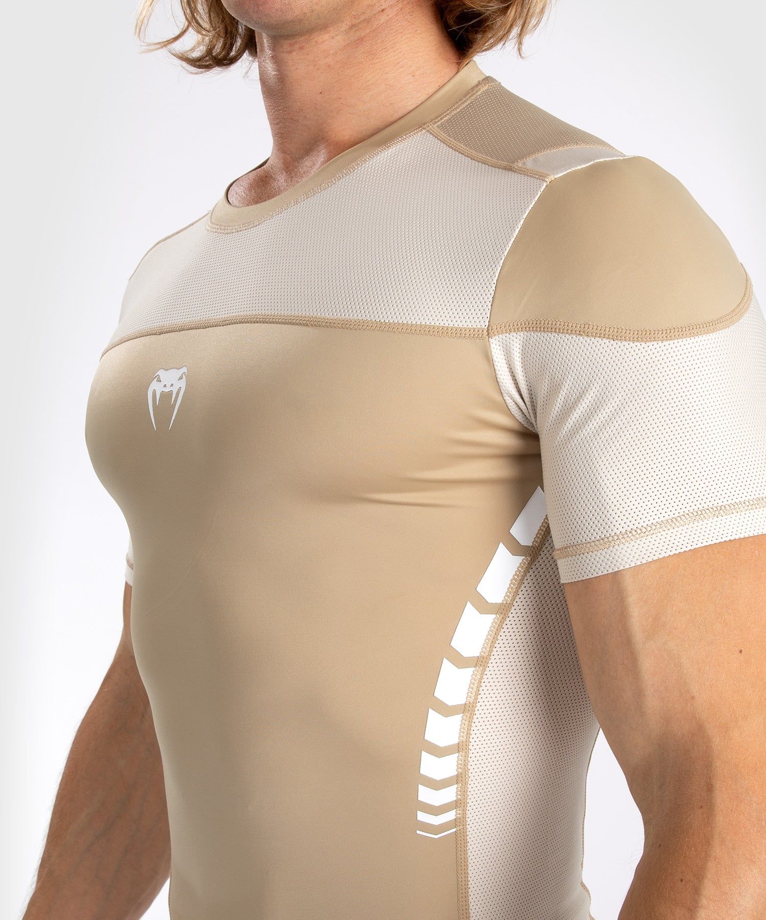 VENUM Tempest男士短袖紧身衣像“第二层皮肤”一样,在擒拿格斗过程中提供保护,防止受伤,并能自由活动。轻质透气面料搭配网眼衬垫,有助于在训练中保持干爽。压缩技术还有助于减轻肌肉疲劳。