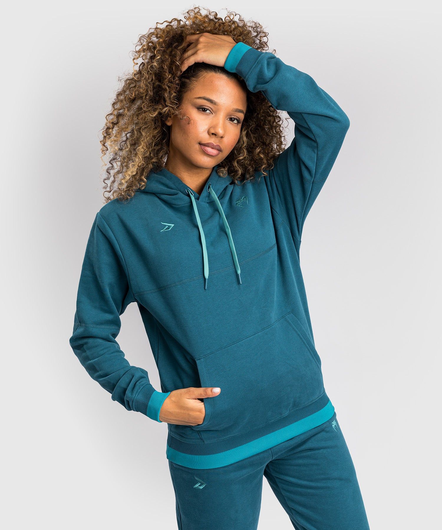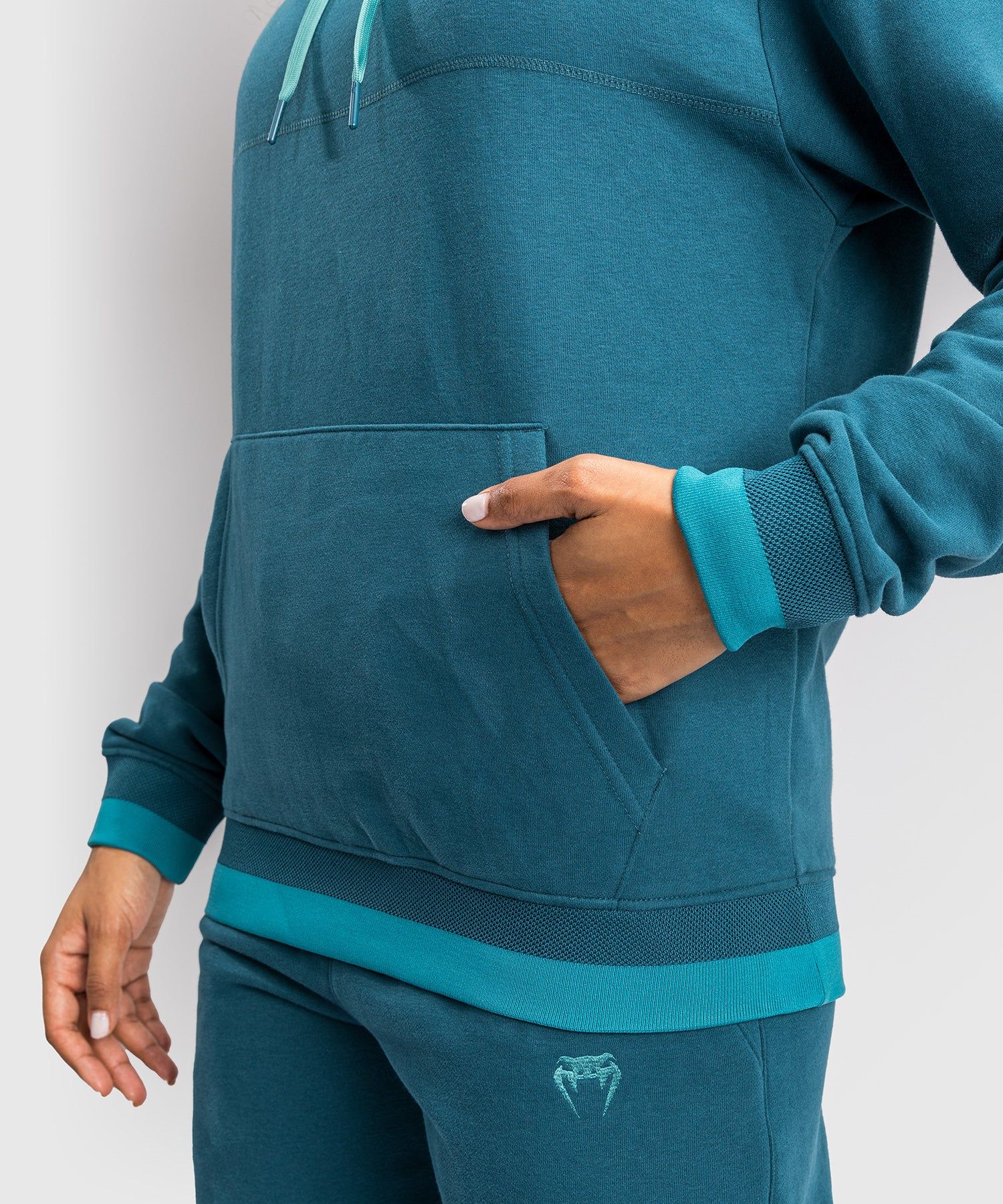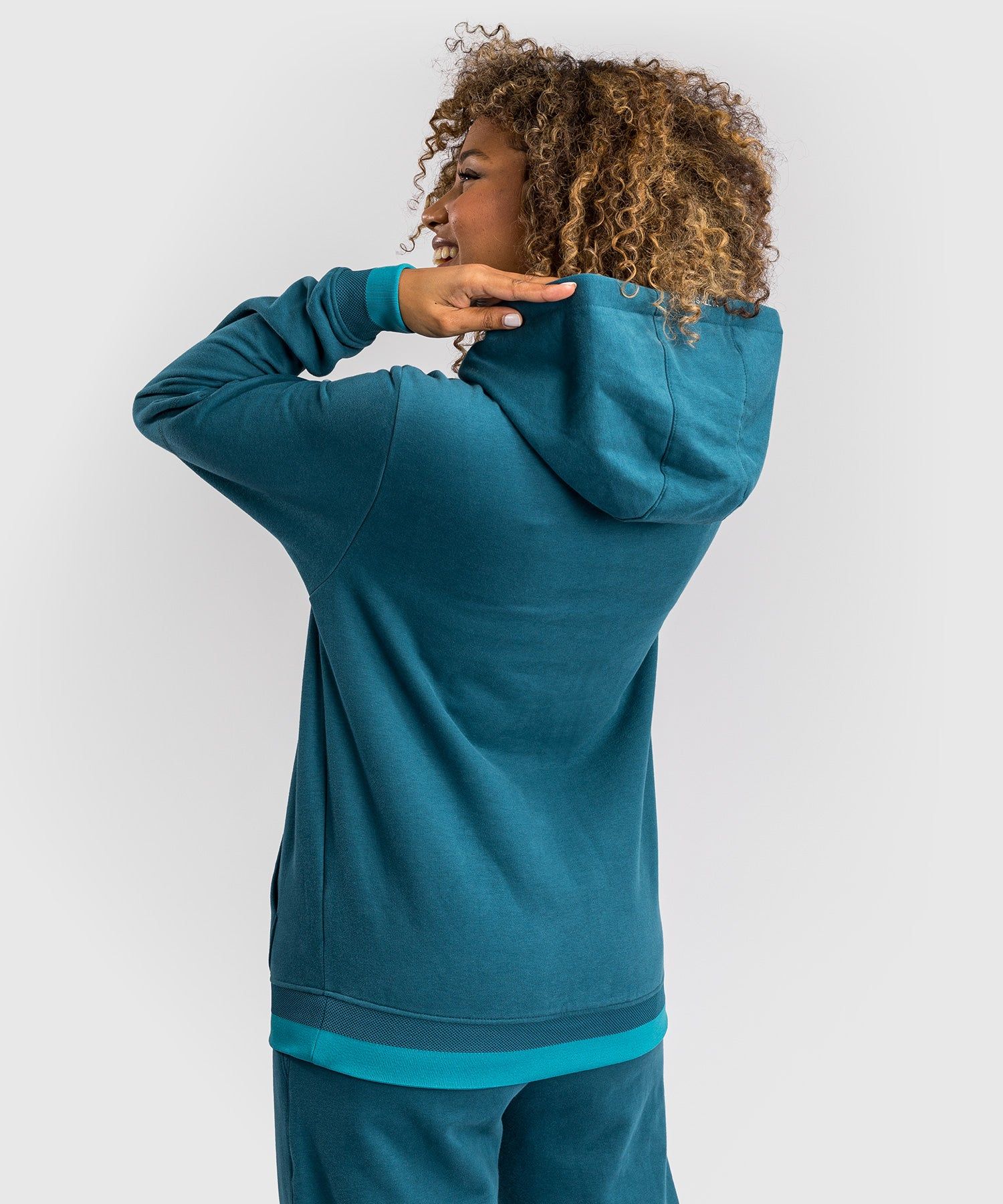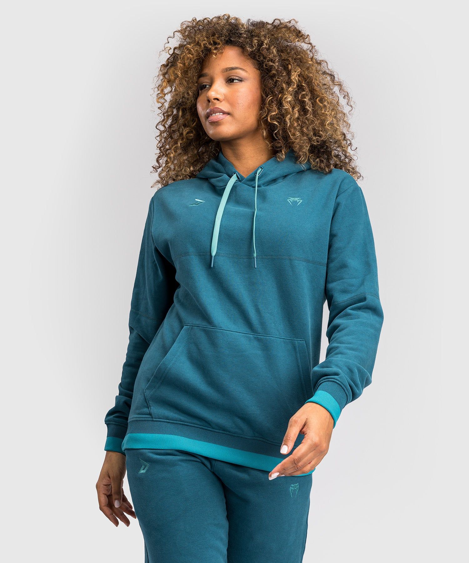 Venum x Demi 卫衣是一款天蓝色的中厚棉质连帽衫。这款优质套头连帽衫设计有袋鼠口袋和松紧袖口。兜帽处绣有 “Always All In”字样,时刻提醒你在日常生活中保持活力!