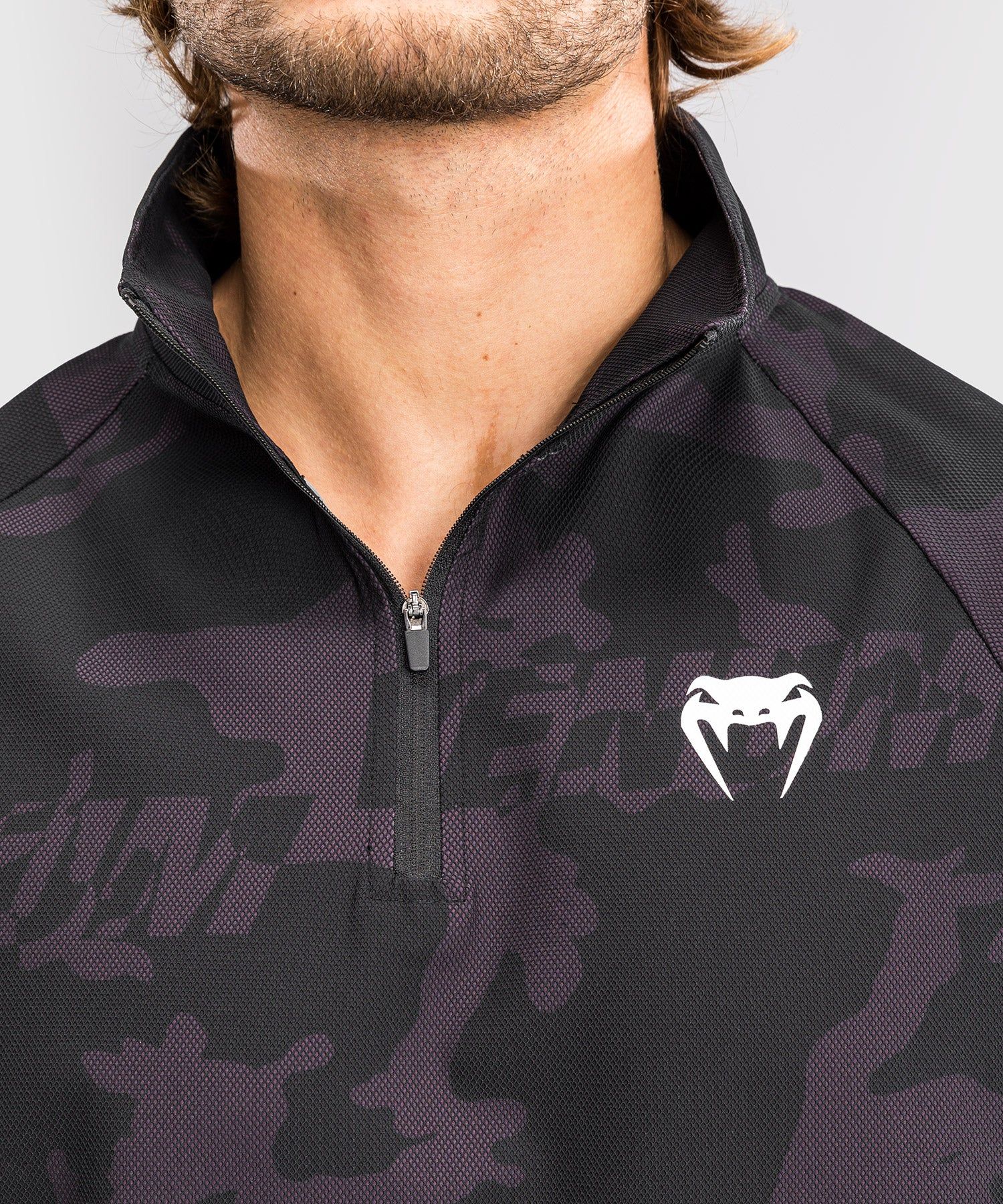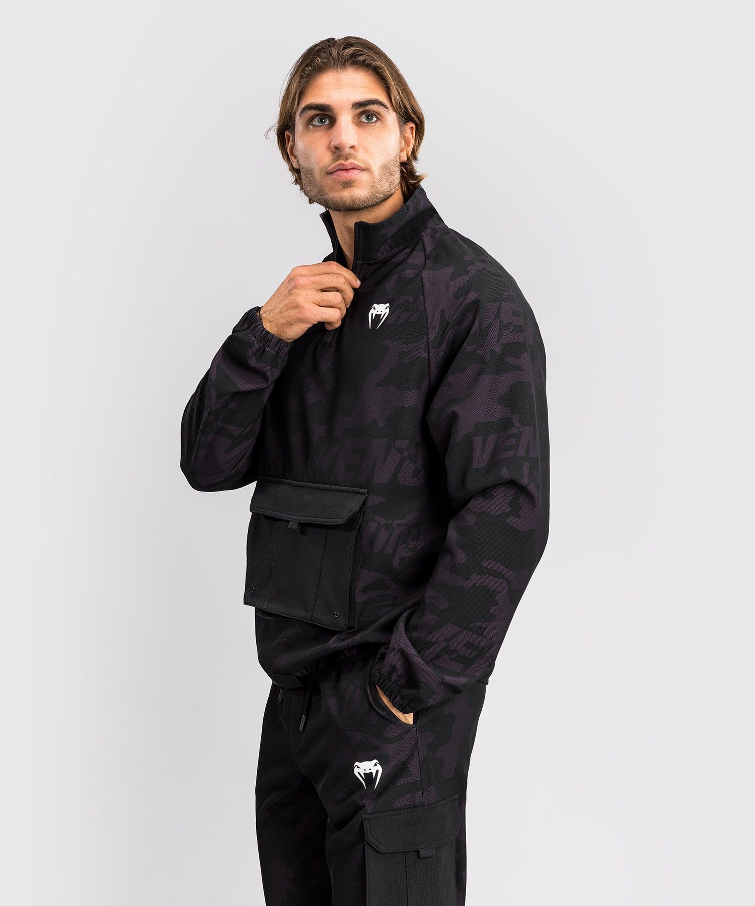 VENUM Trooper 男士半拉链夹克正面设计有一个大尺寸工装袋,与夹克上的品牌迷彩印花相得益彰。半拉链和立领设计增加了结构感,面料略带弹力,可随您的动作伸展。