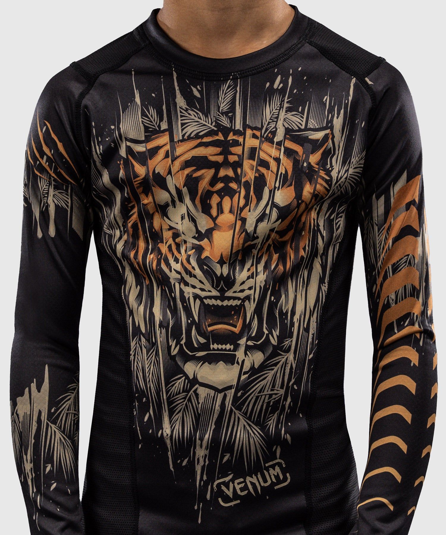 VENUM Tiger 儿童长袖紧身衣醒目地呈现出猛虎捕猎时的凶猛姿态,是一款专为拥有野性的年轻运动员打造的优质产品。