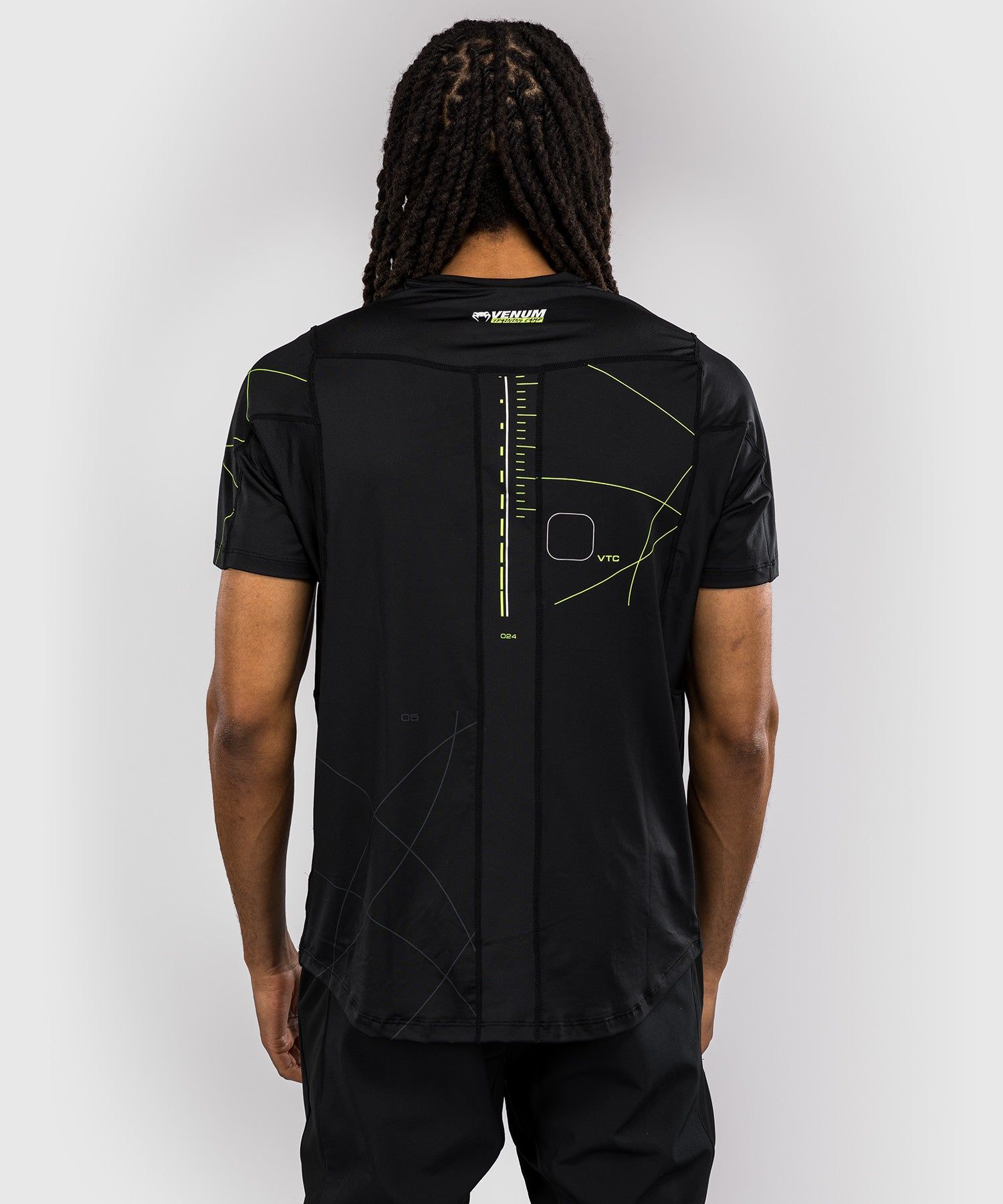 T恤以流畅的黑色为底色,搭配醒目的霓虹绿装饰,这一设计体现了 VTC 自身的活力和强度。