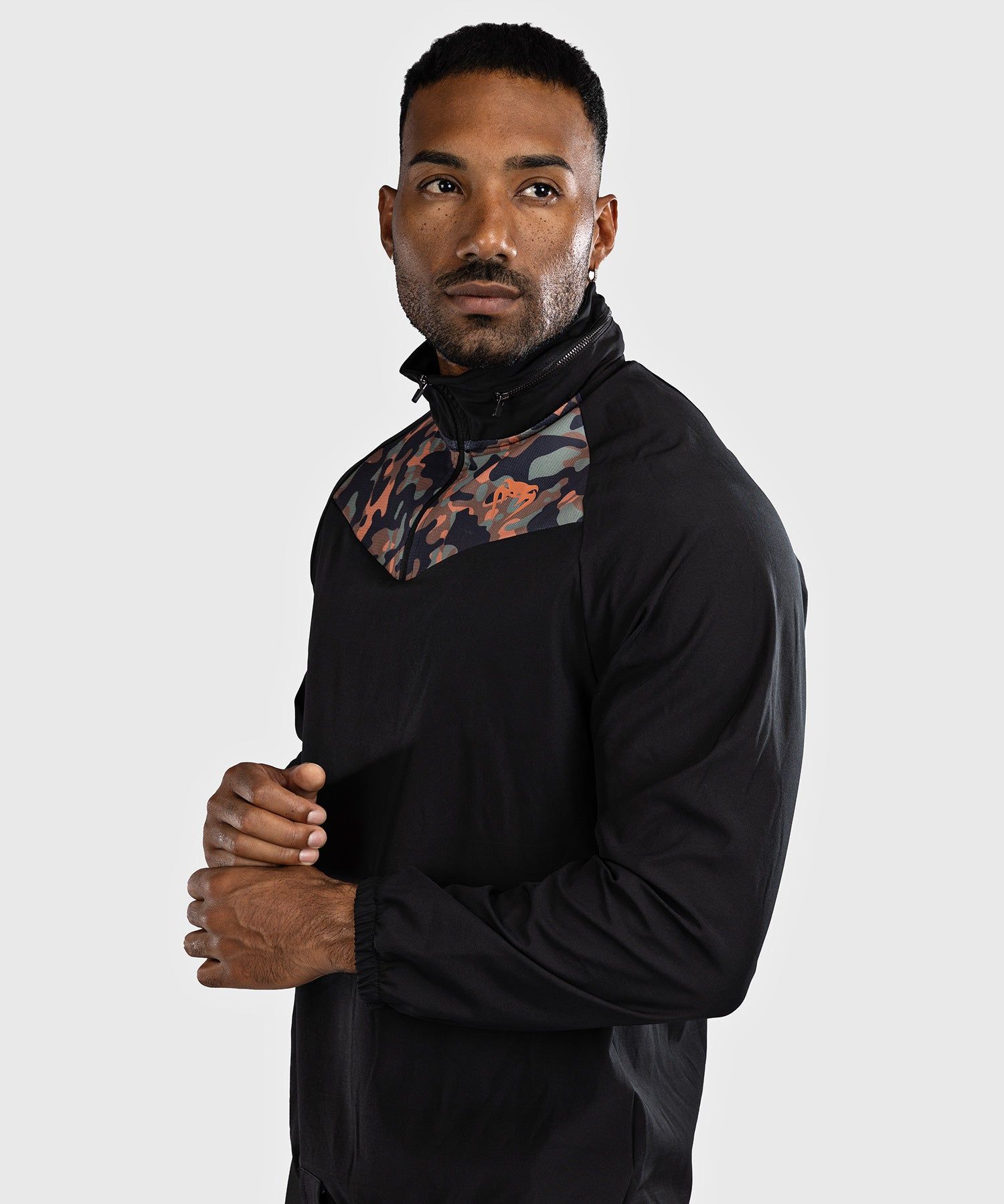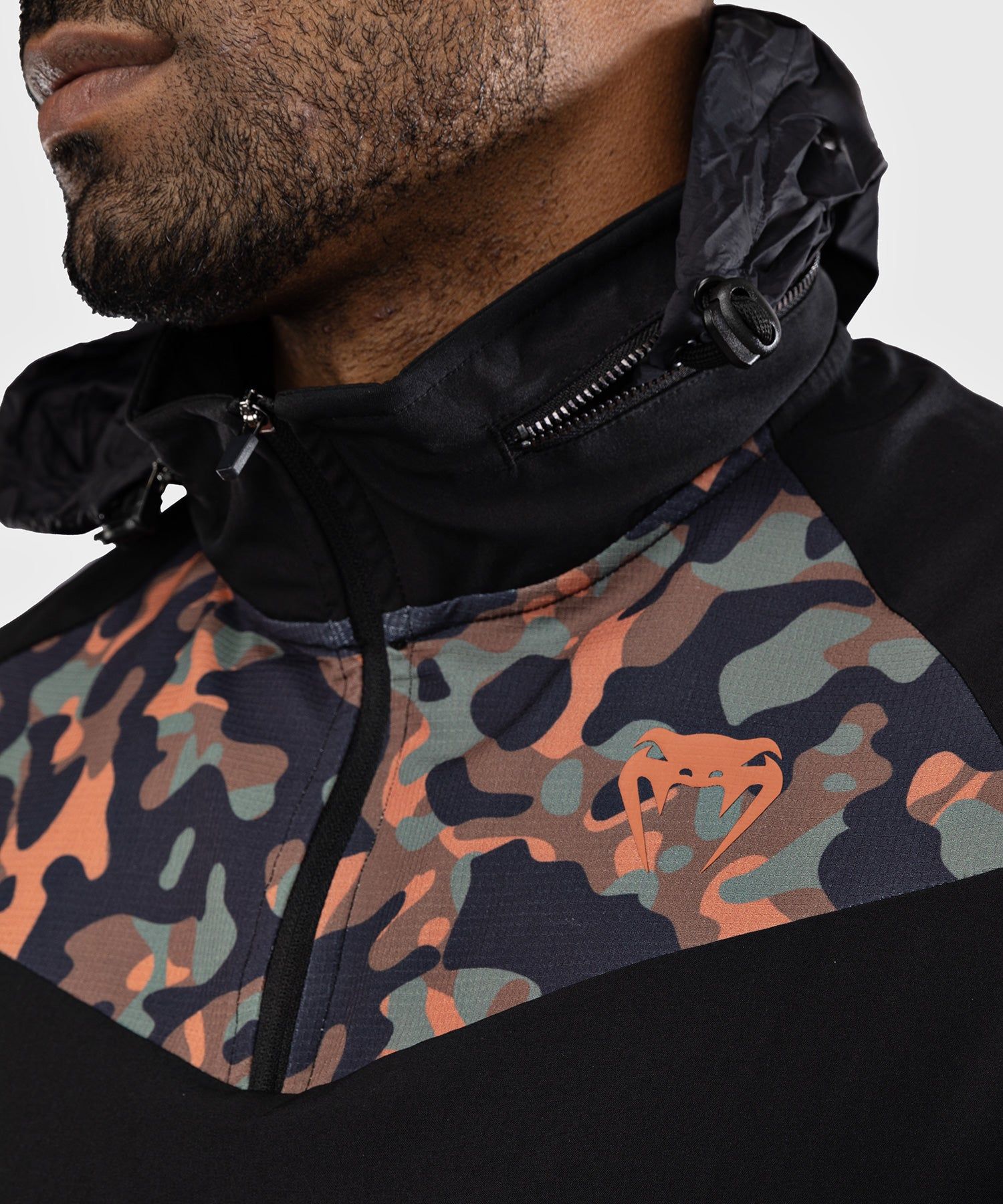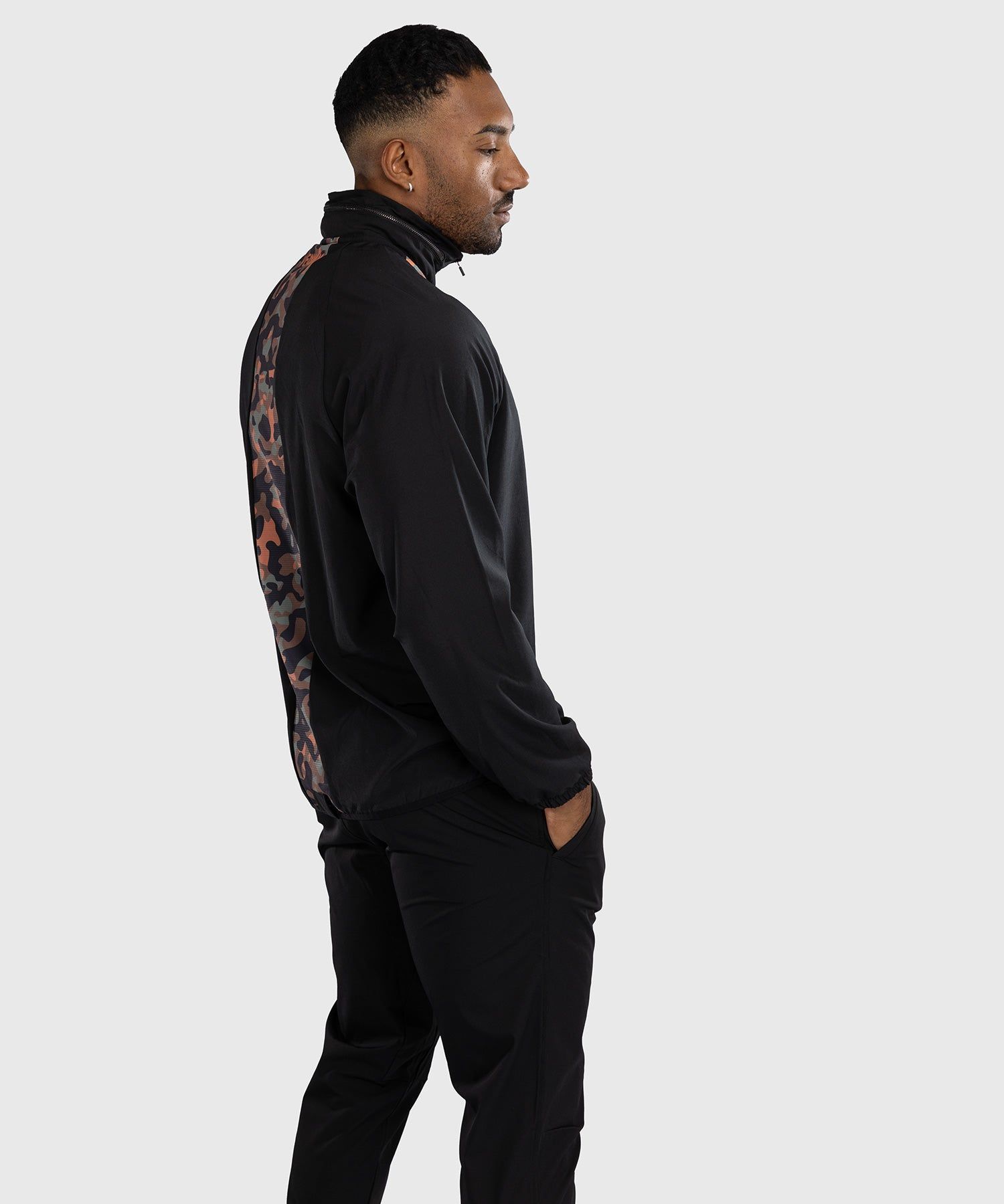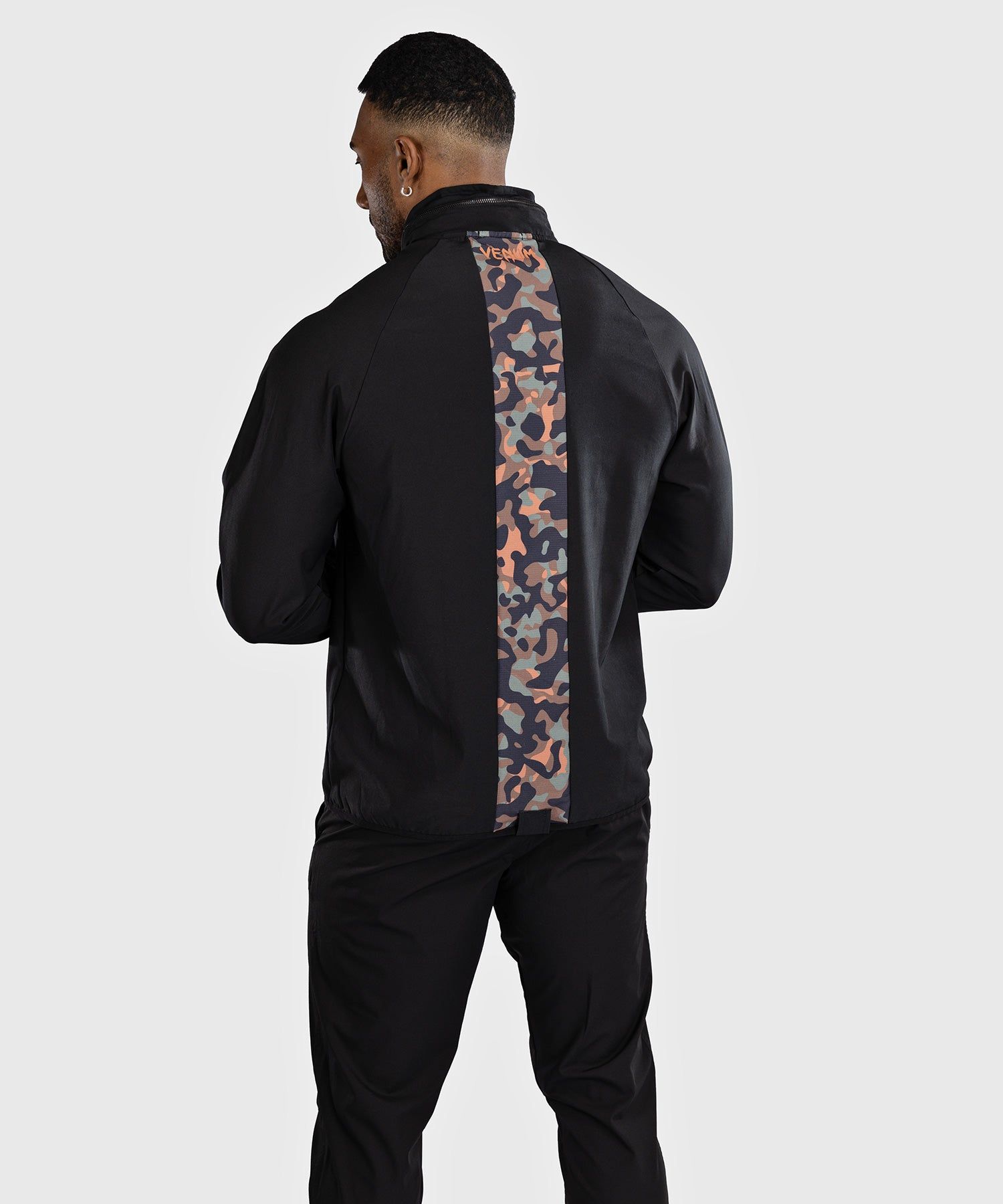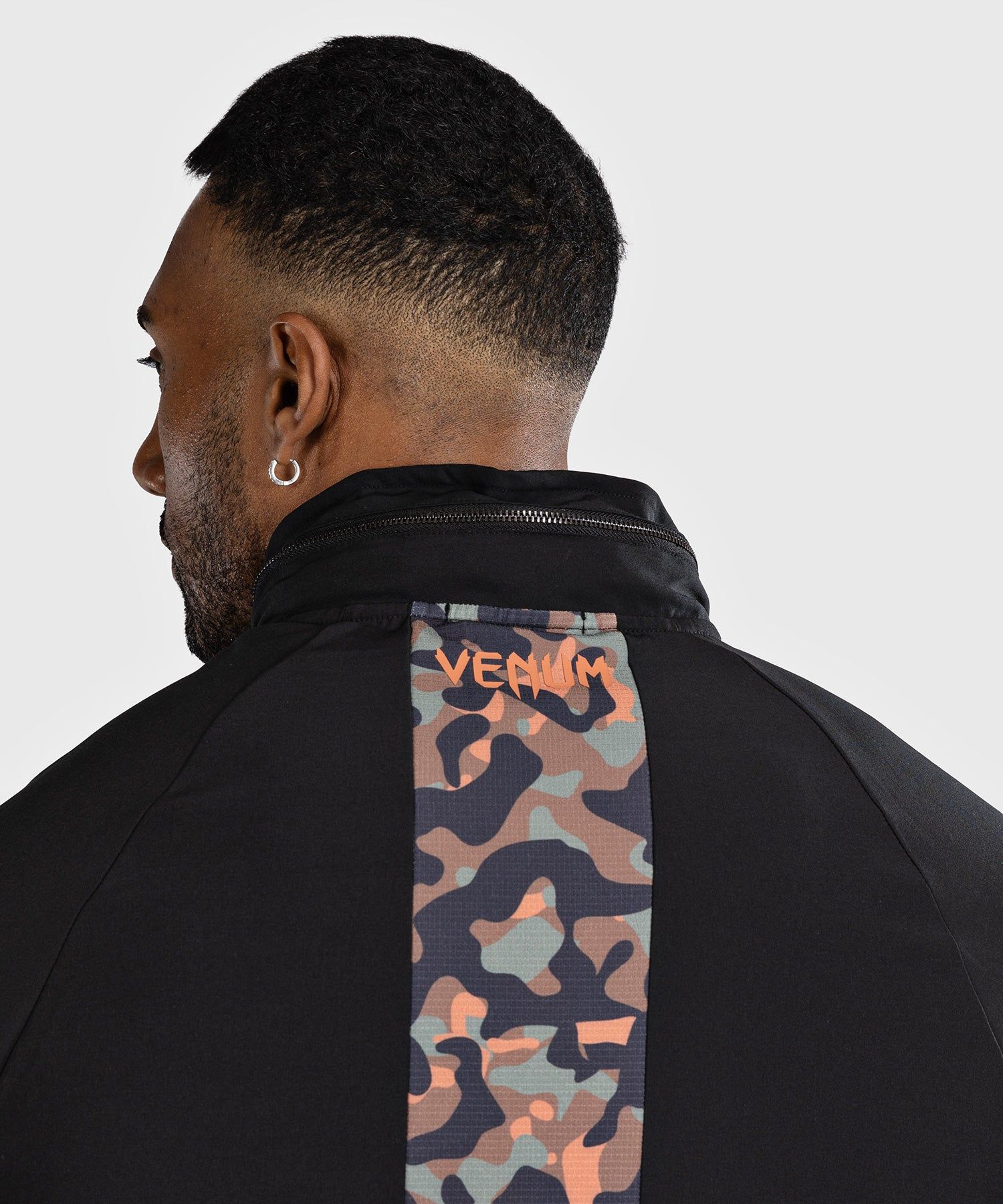 Venum Jungle Ops运动夹克在胸前和背部采用热带迷彩设计细节,灵感来自丛林战中迅速果断的激烈战斗。整装待发,勇往直前! 这款男士运动夹克与同系列的配套卫裤穿搭,打造整体造型感。