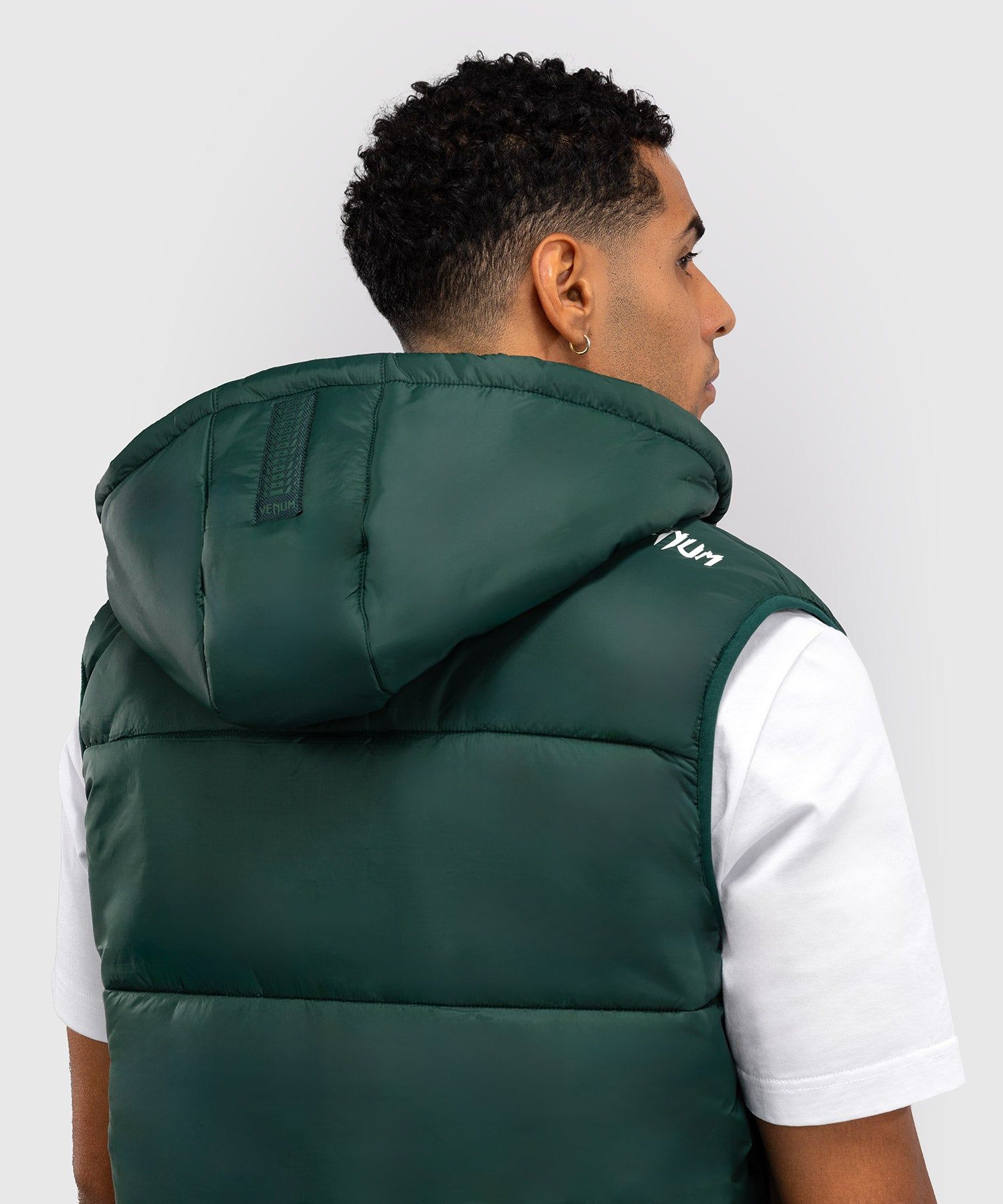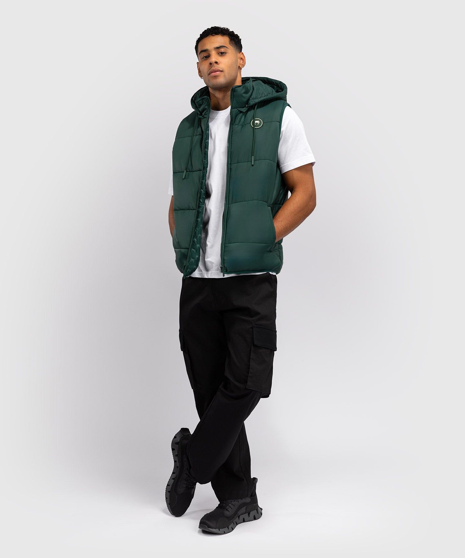 VENUM Urban Guard棉马甲采用无袖设计,配有全拉链开合和可调节抽绳兜帽。高领设计为颈部增加了一层保护。这款棉马甲可以和T 恤或卫衣叠穿,也可以穿在外套里,以增加保暖性。马甲的拉链侧袋便于您在外出时存放所需物品。
