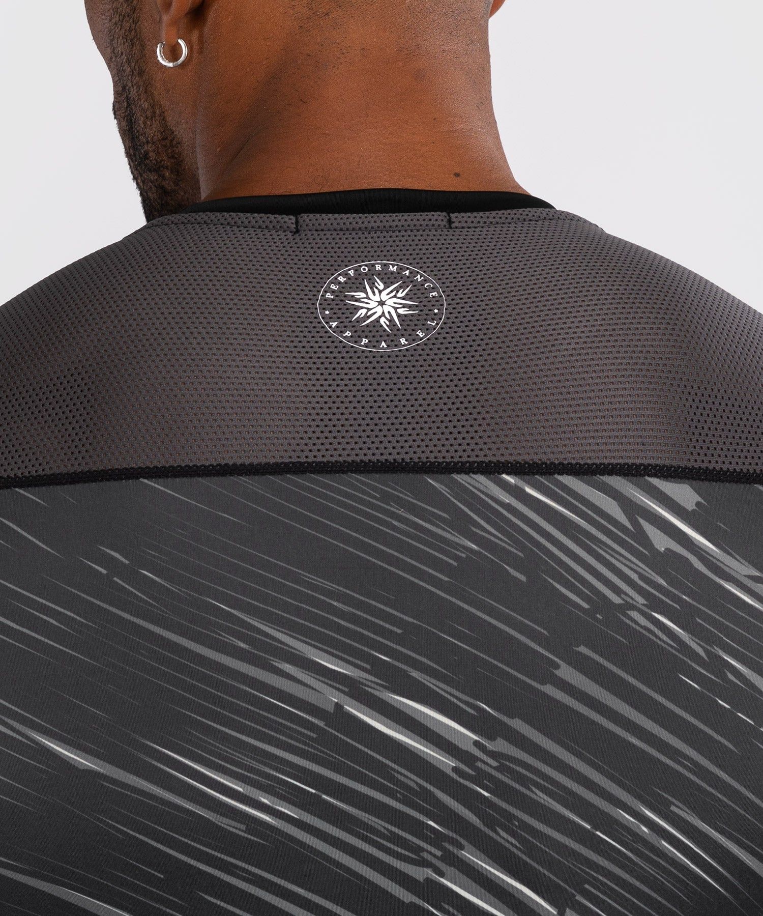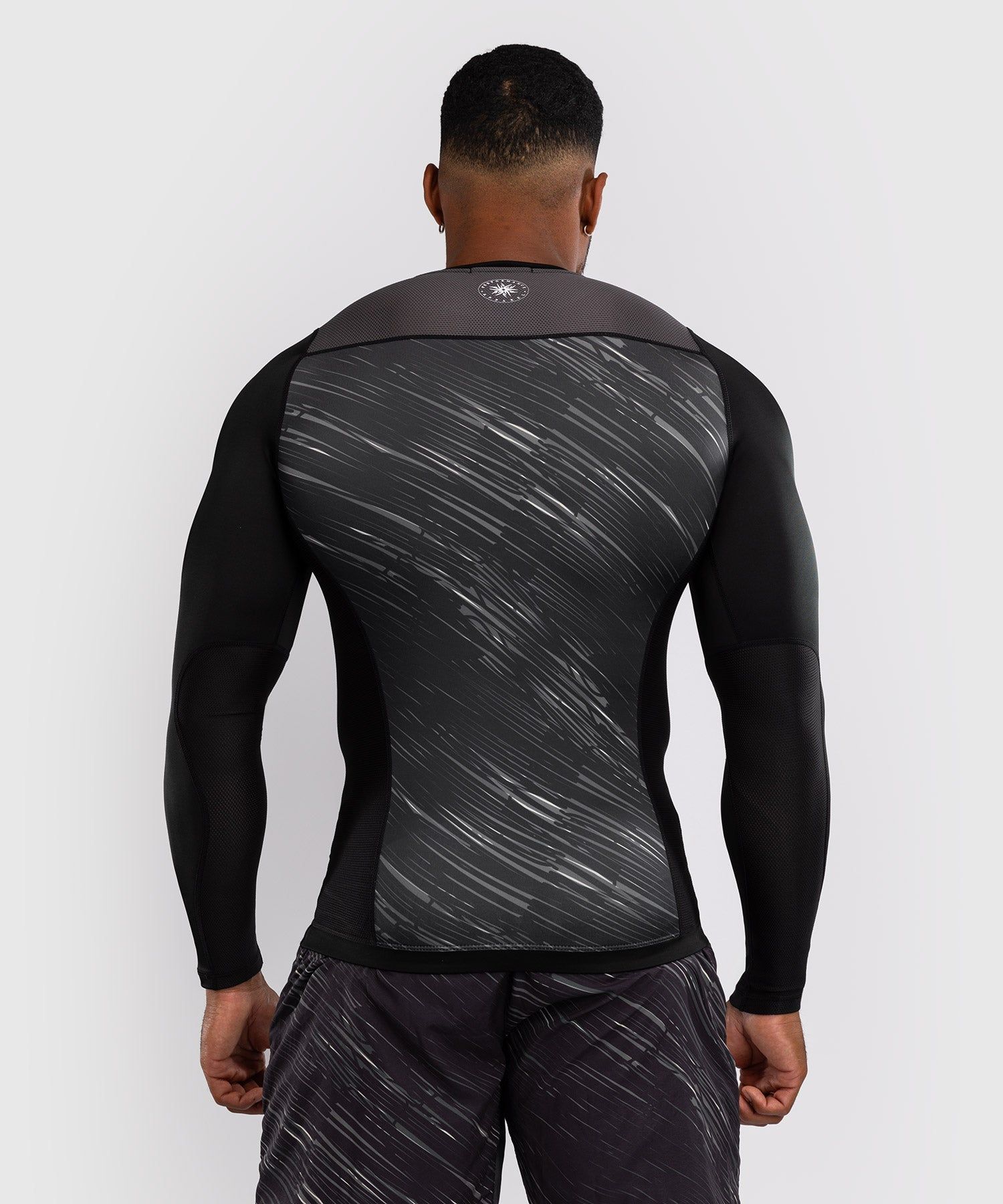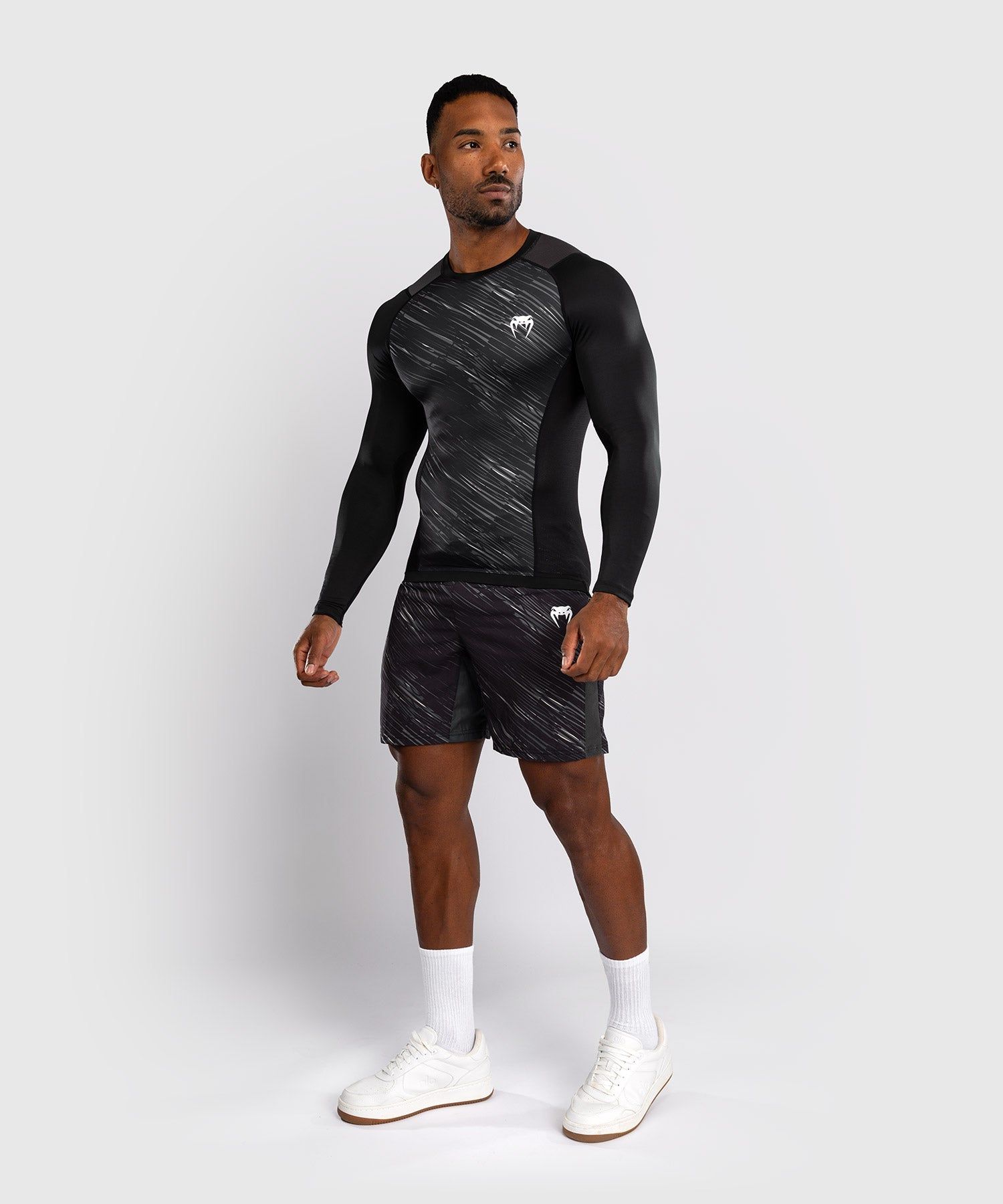 Venum Rapid 长袖紧身训练服如同第二层肌肤,在格斗训练中提供保护,防止受伤,同时确保运动自由度。其压缩技术有助于促进肌肉恢复。此外,在受力点采用加固缝线设计,确保即使在最激烈的训练中也能持久耐用。这款黑灰配色的训练服饰有动态热转印图案,并在胸部点缀白色Venum标志。