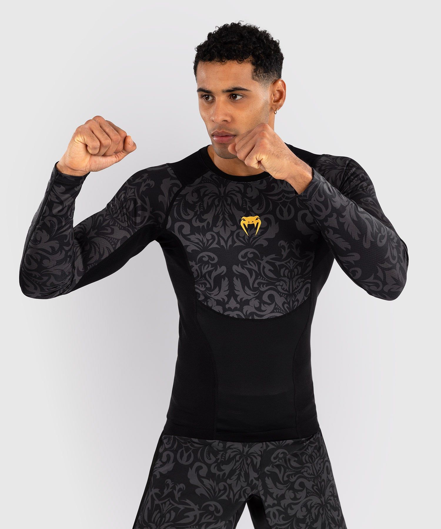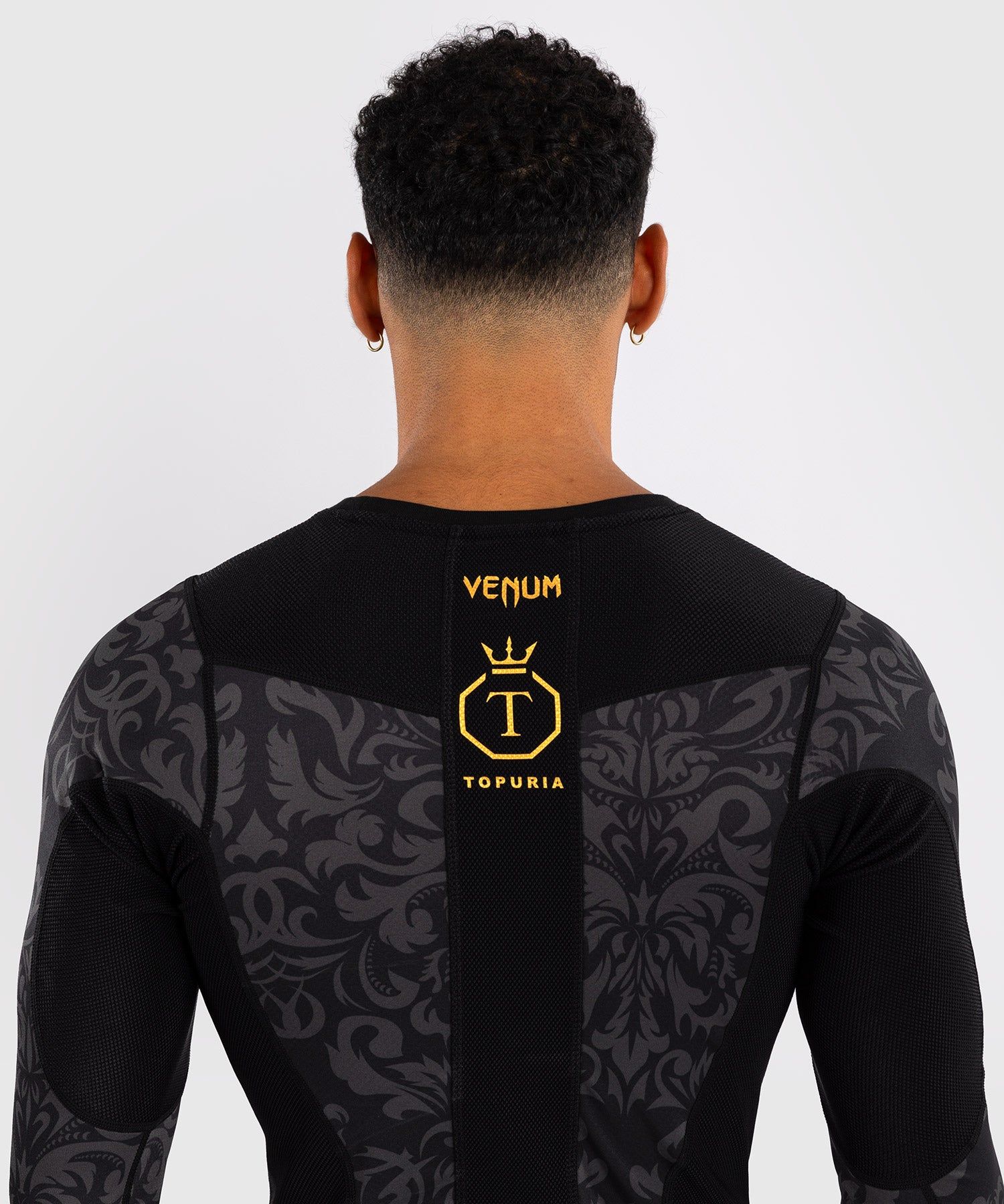 VENUM x Topuria Unmatched 长袖紧身衣就像运动员的“第二层皮肤”,可在高强度训练时提供支撑,防止受伤,让您自由活动。同时紧身衣的压缩技术还有助于促进肌肉恢复。华丽的黑金配色设计象征着这位备受喜爱的VENUM运动员和UFC冠军的辉煌崛起与统治。