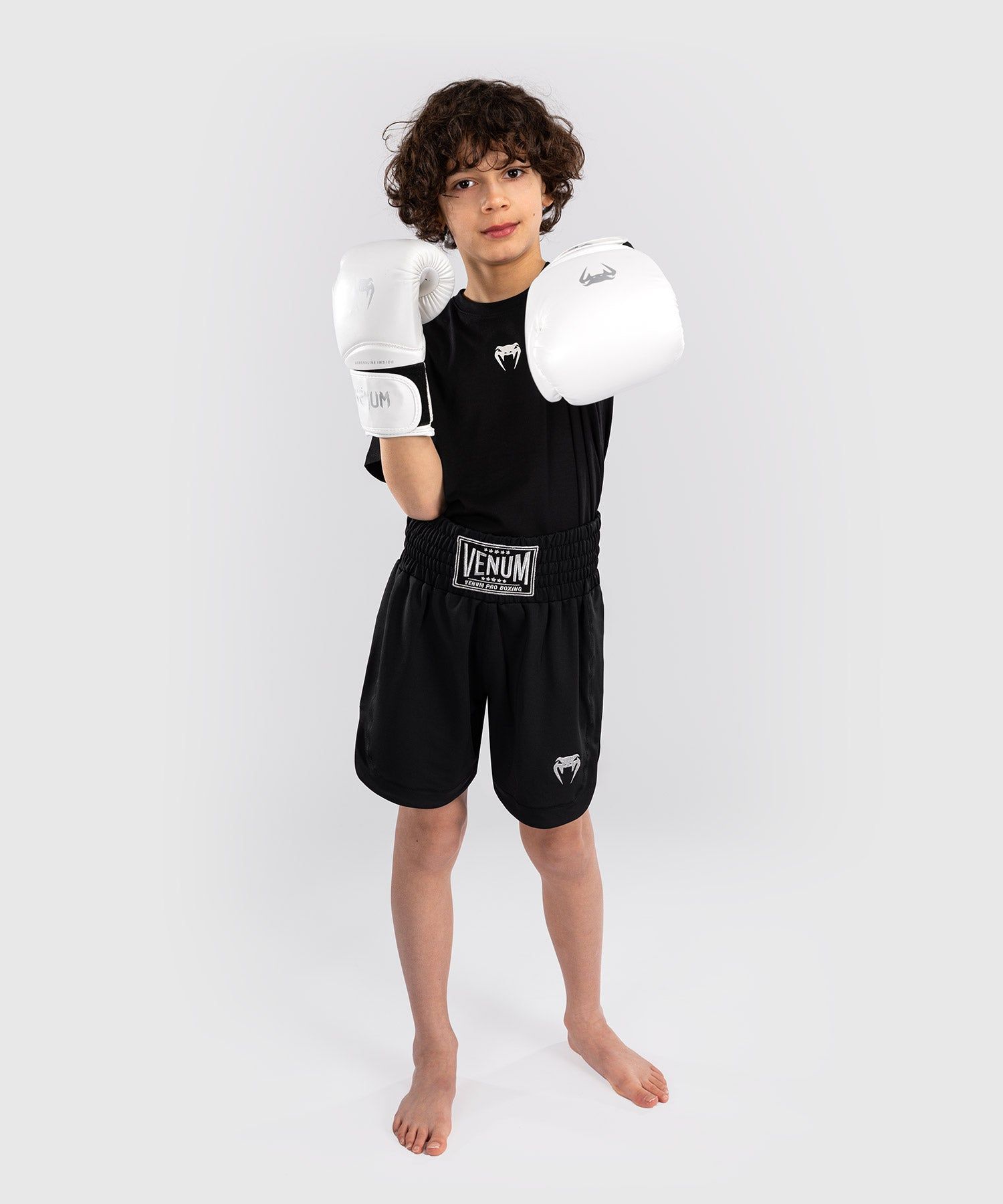 Venum Classic Kids 拳击短裤 在传统设计中融入了 Venum 的独特风格,专为年轻的拳击运动员和拳击爱好者设计。