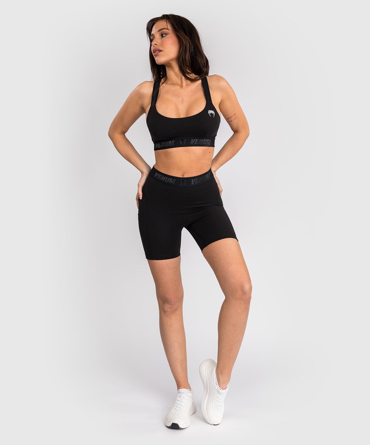 Venum Elevate 女士运动内衣这是一款简约风格的运动内衣,配有可调节肩带和胸部弹性支撑带,既展现女性气质,又非常适合中等强度的运动训练。 束带上印有撞色品牌印花图案,胸部位置有白色的Venum徽标,彰显 Venum 的独特风格。