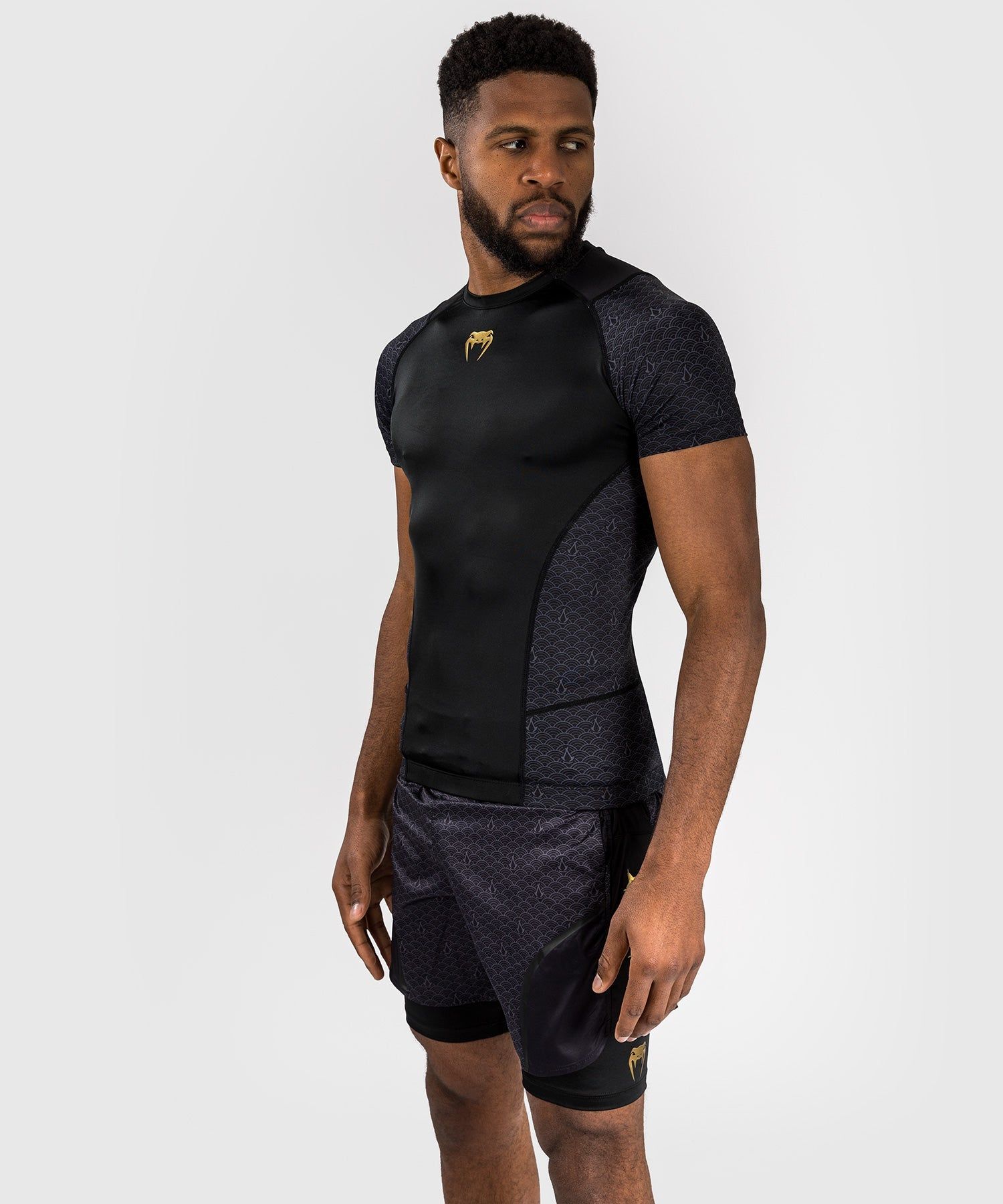 Venum x 《刺客信条:影》联名款男士短袖紧身衣如同第二层皮肤,既能提供防护,又能在格斗中保持动作的自由度。其压缩技术还有助于促进肌肉恢复。训练服背面的精美渐变图案展现了武士弥助的威严形象。在训练中穿上这件衣服,仿佛能唤起弥助的力量和武术造诣。
