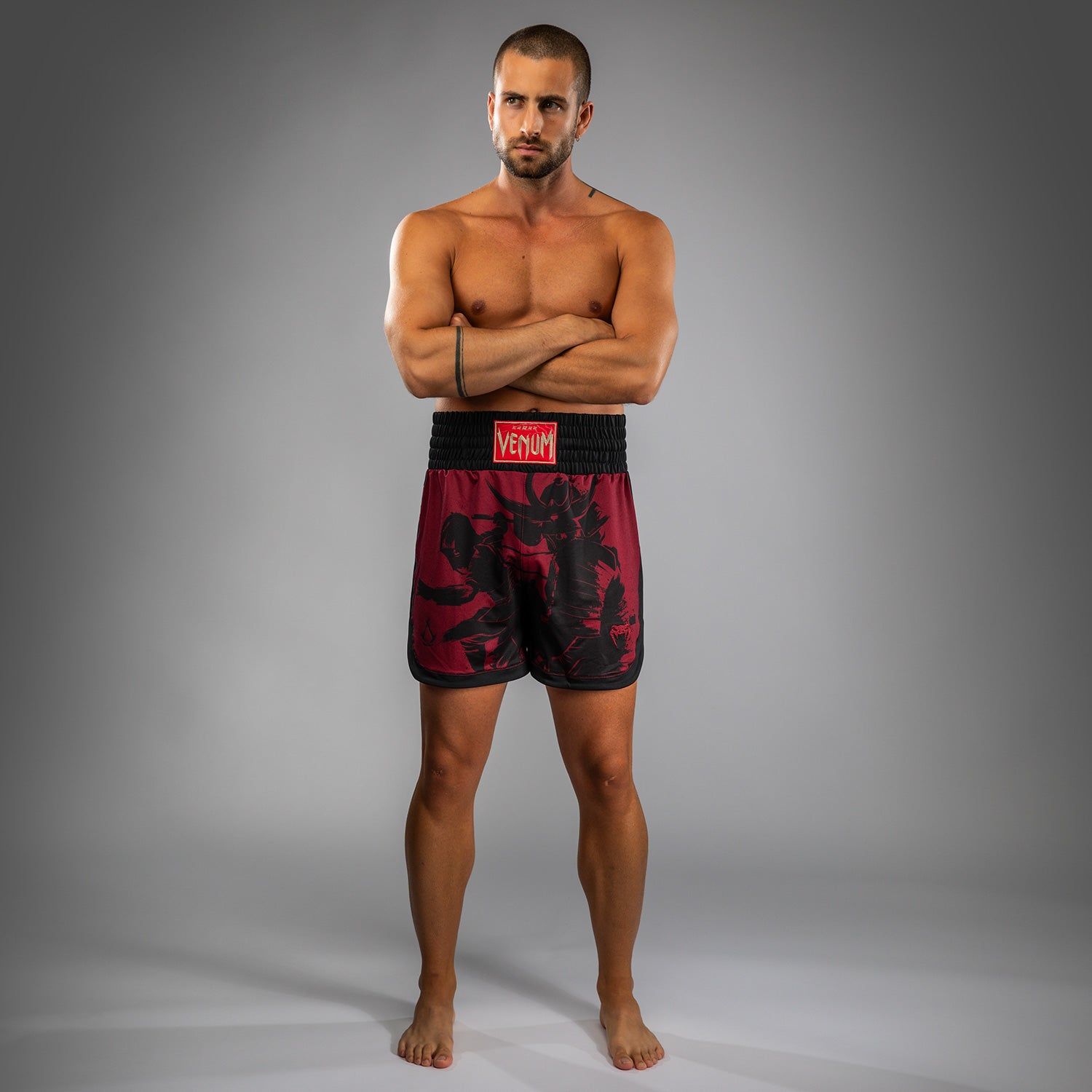 VENUM × Assassin‘s Creed Shadows 男士拳击短裤采用轻量化设计,专为拳击运动员打造。传统宽腰带确保稳固贴合,助你在擂台上专注发挥;弹性面料与侧边开衩设计则保障全方位活动自由。
