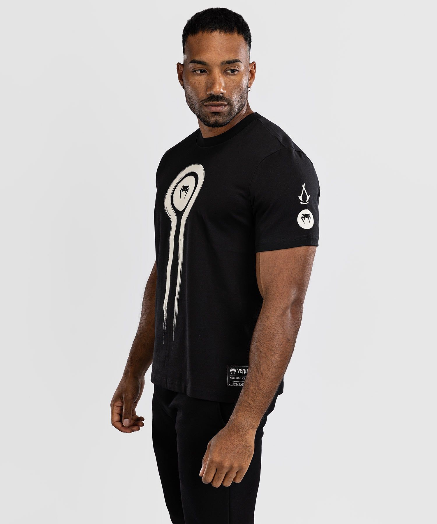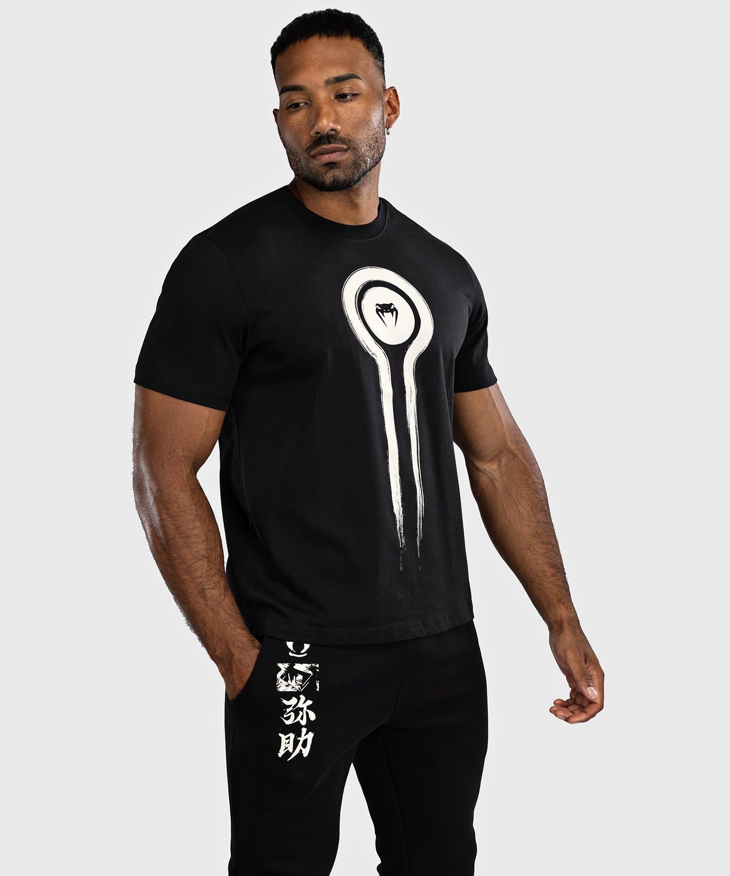 Venum x 《刺客信条:影》联名款黑色T恤是一款经典 T 恤,以弥助和直江为灵感、制作了白色的印花图案。