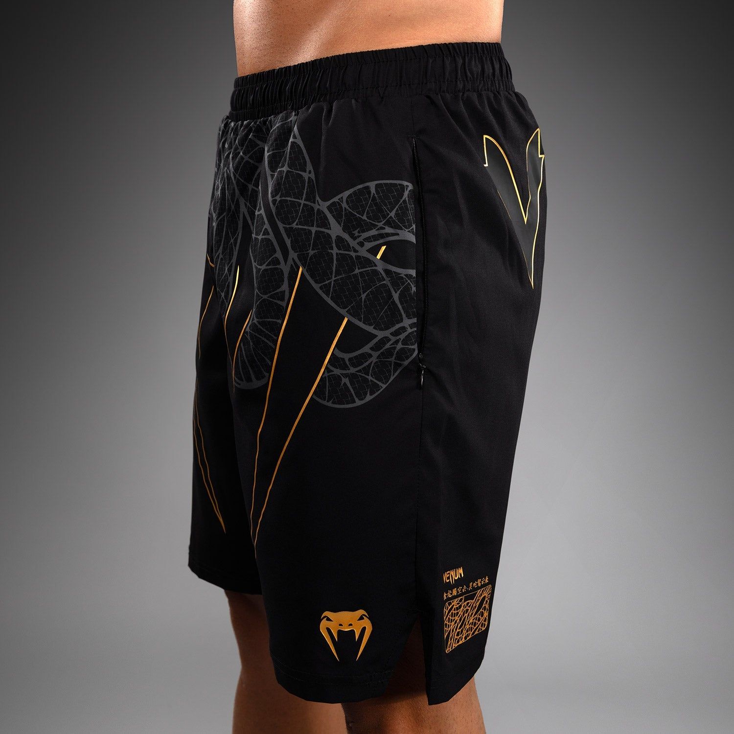 Venum Serpenti 男士训练短裤采用中长款设计,适用于有氧训练、举重及对抗练习。弹性腰带提供稳固支撑,修身宽松剪裁与弹力面料确保动作自如。侧边拉链口袋更添精致质感。