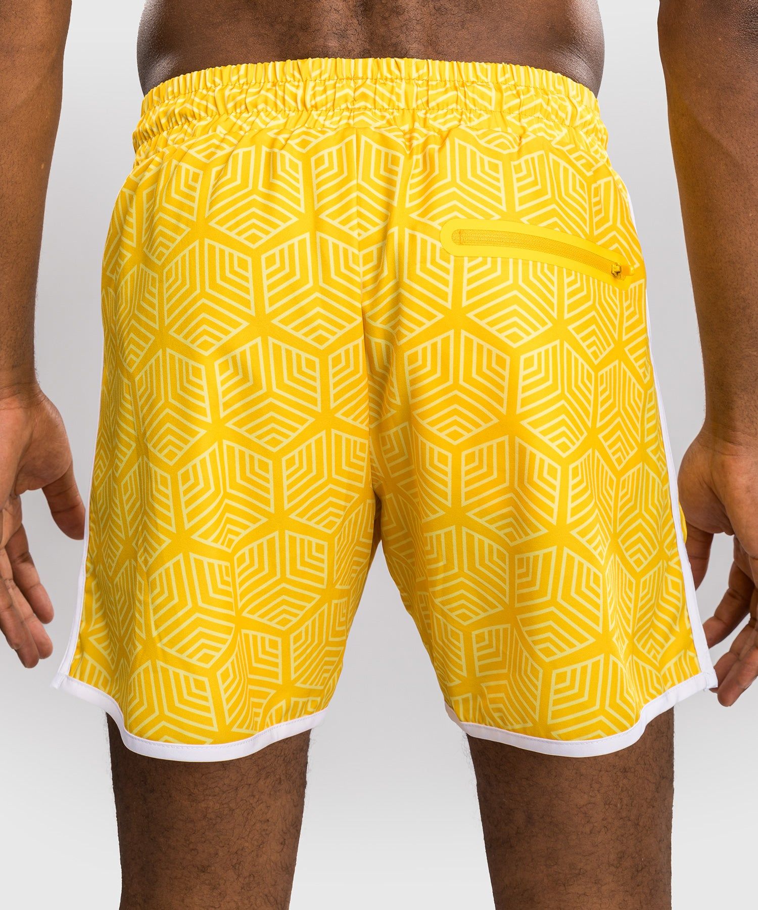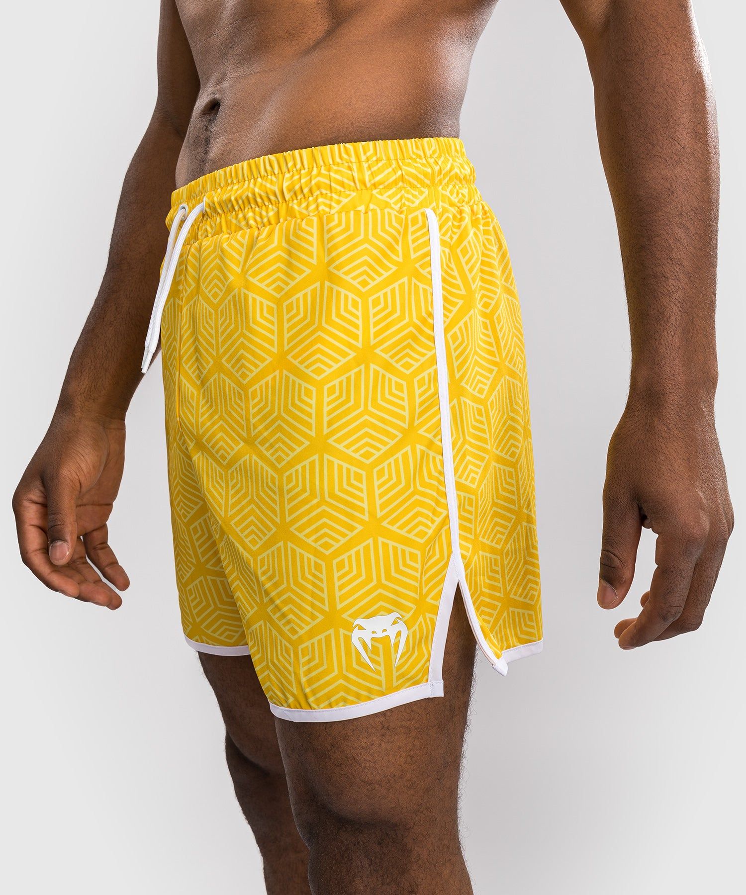 Venum Octane 沙滩短裤采用中长设计,配有抽绳腰带,确保稳固且可调节的贴合度,侧边开衩设计则让您活动自如。短裤采用耐用且灵活的快干面料混纺制成,抗海水腐蚀和磨损,能够应对高温、冲浪及各类挑战。鲜艳的几何图案带来高能量风格,彰显夏日运动的力量与激情。