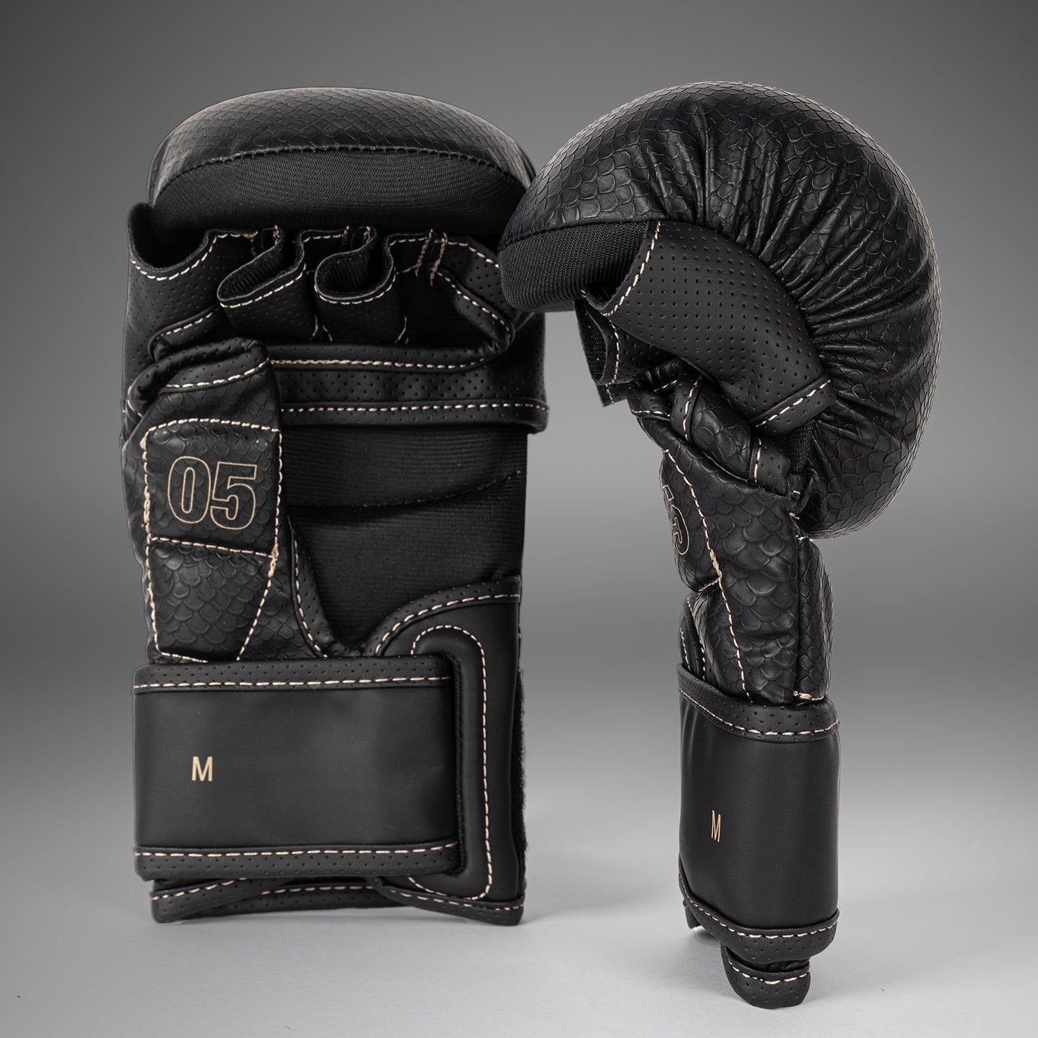 手套采用Skintex皮革打造,具备卓越耐用性。氯丁橡胶内衬有助于汗液蒸发,在缠斗时提供稳固抓握力。