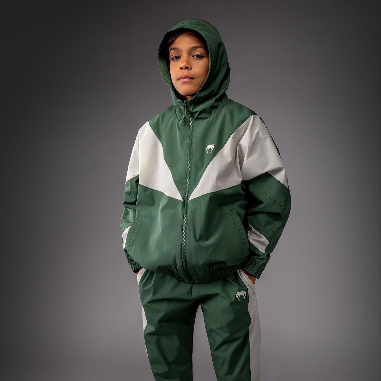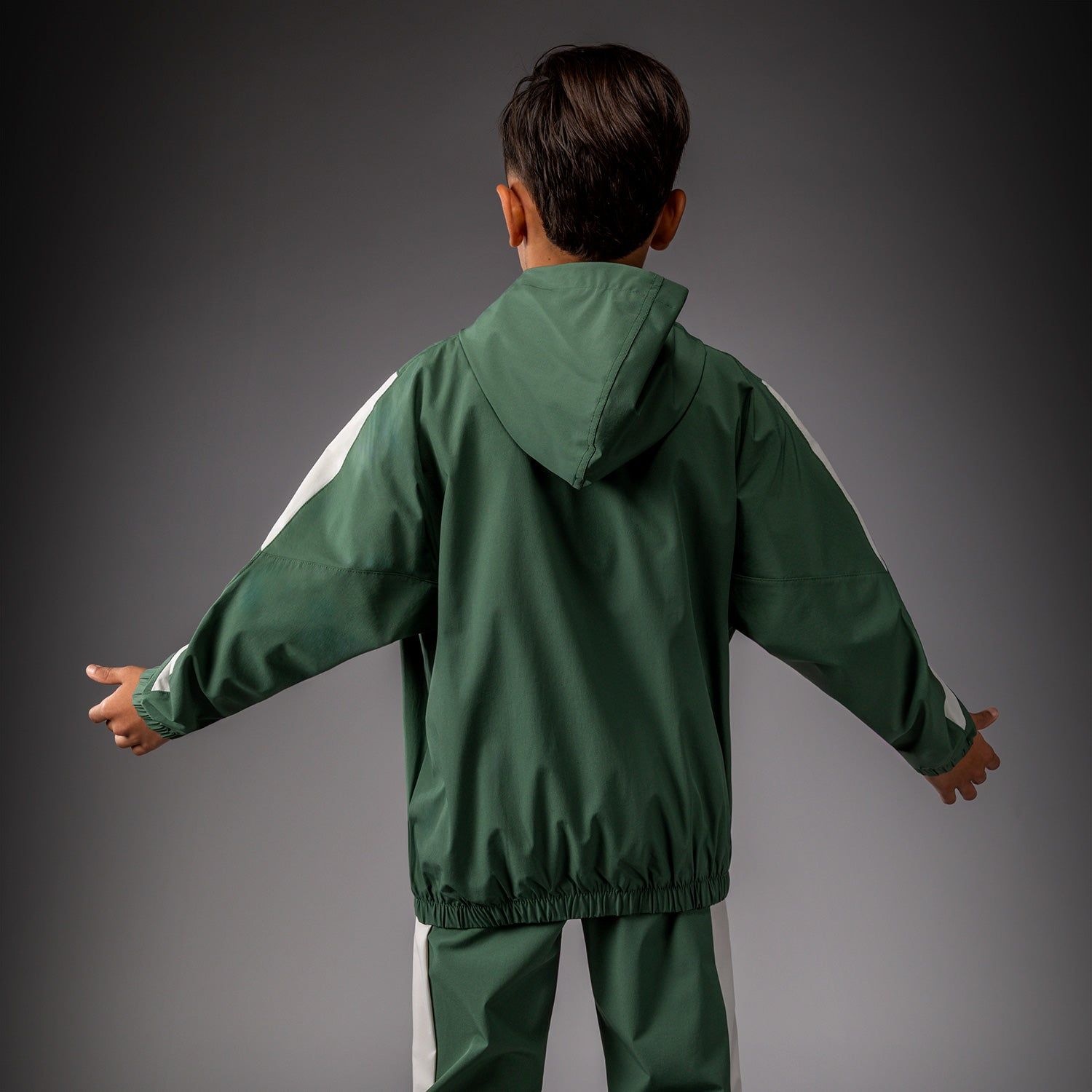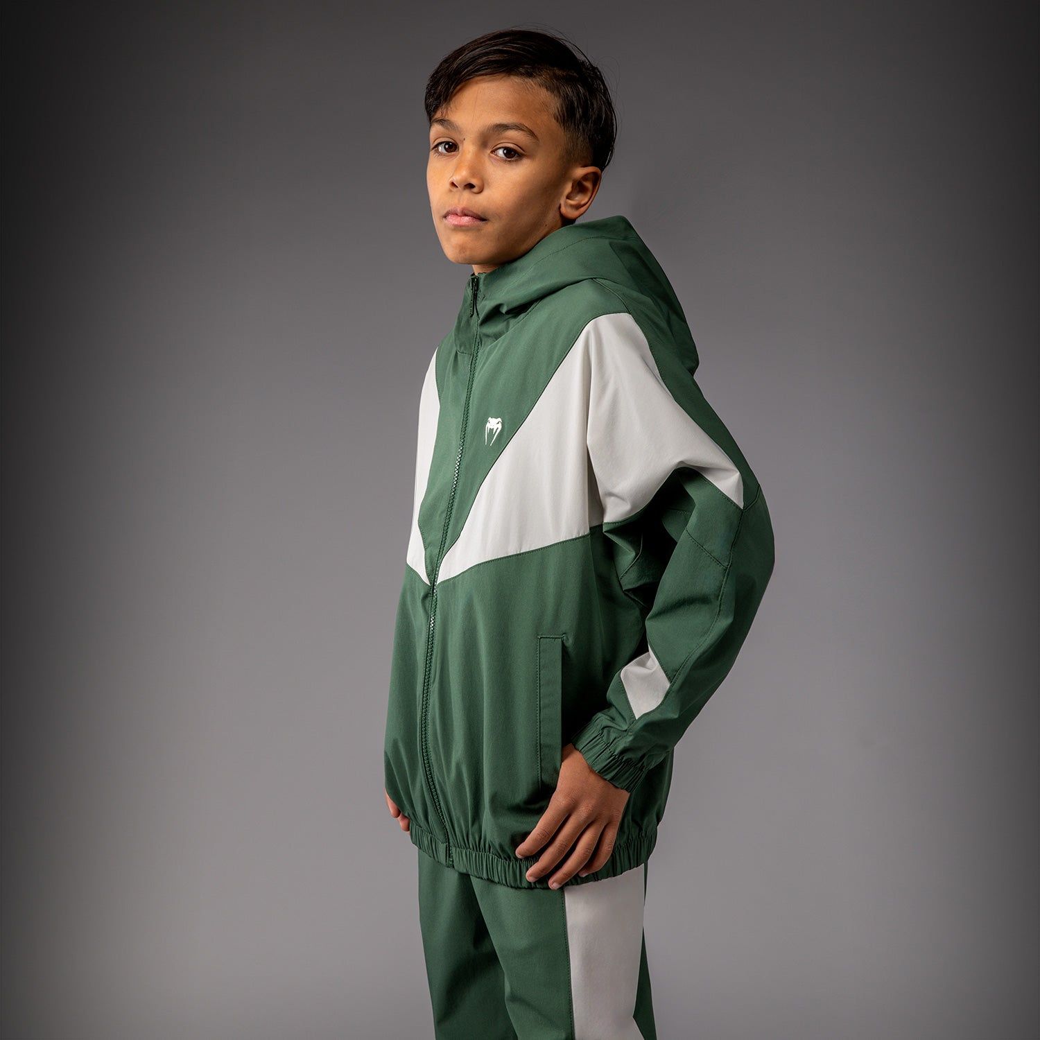 VECTRA 儿童运动夹克是一款带帽全拉链夹克设有侧边开口口袋。弹性袖口和下摆为这件轻盈的夹克增添了结构性与支撑性。宽松版型提供充足空间,方便叠穿。