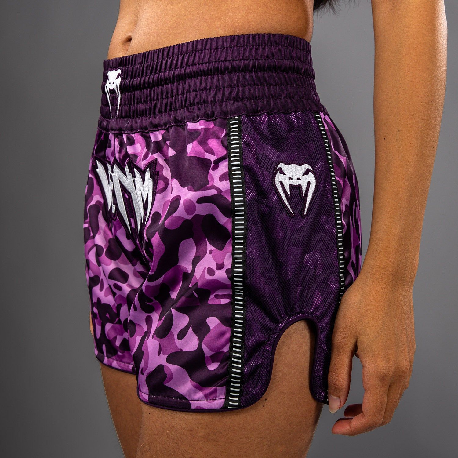 VENUM Iris泰拳短裤采用轻盈灵活的设计,侧边开衩设计确保拳台运动时的自如行动。这款女士泰拳短裤将成为您训练与比赛的优选。传统宽幅弹性腰带能在训练强度提升时提供支撑。