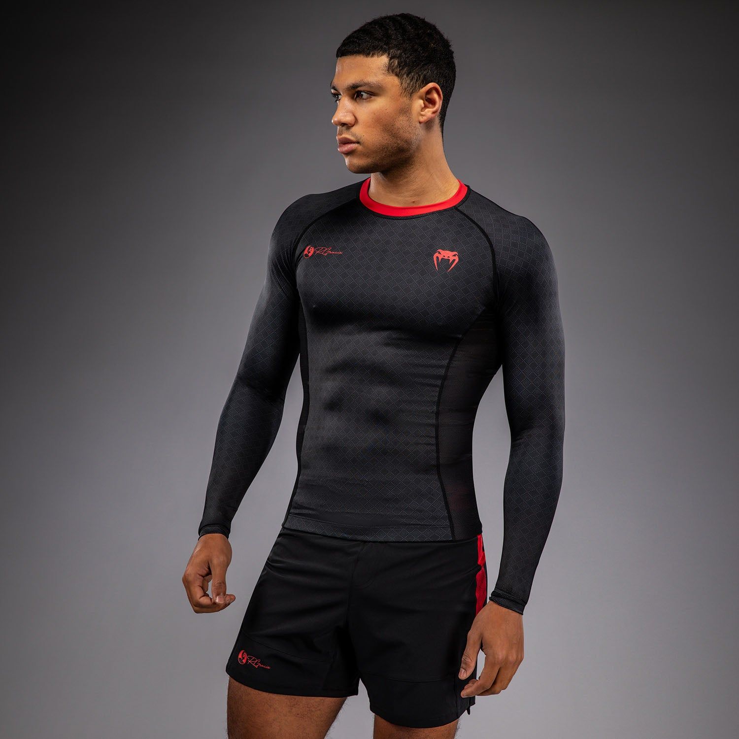 VENUM x Roger Gracie Academy 长袖紧身衣符合IBJJF比赛规定。可与同系列其他单品搭配。