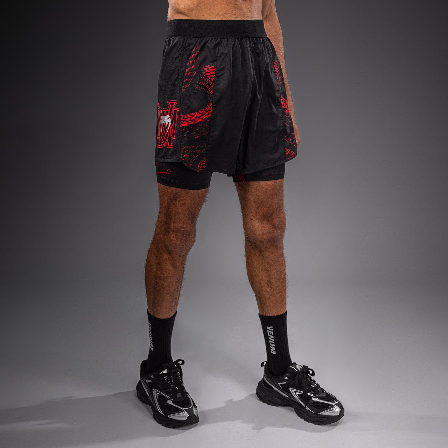 VENUM Matupa训练短裤采用多功能双层设计,是健身房的理想之选。侧边网眼面料提供透气降温效果,在高强度训练中有效排汗。内层短裤提供中度压缩支撑,确保稳固舒适的贴合感,裤长至大腿中部。外层短裤采用轻量透气面料,裤长略高至大腿。弹性腰带提供稳固支撑,侧边口袋增添实用性。