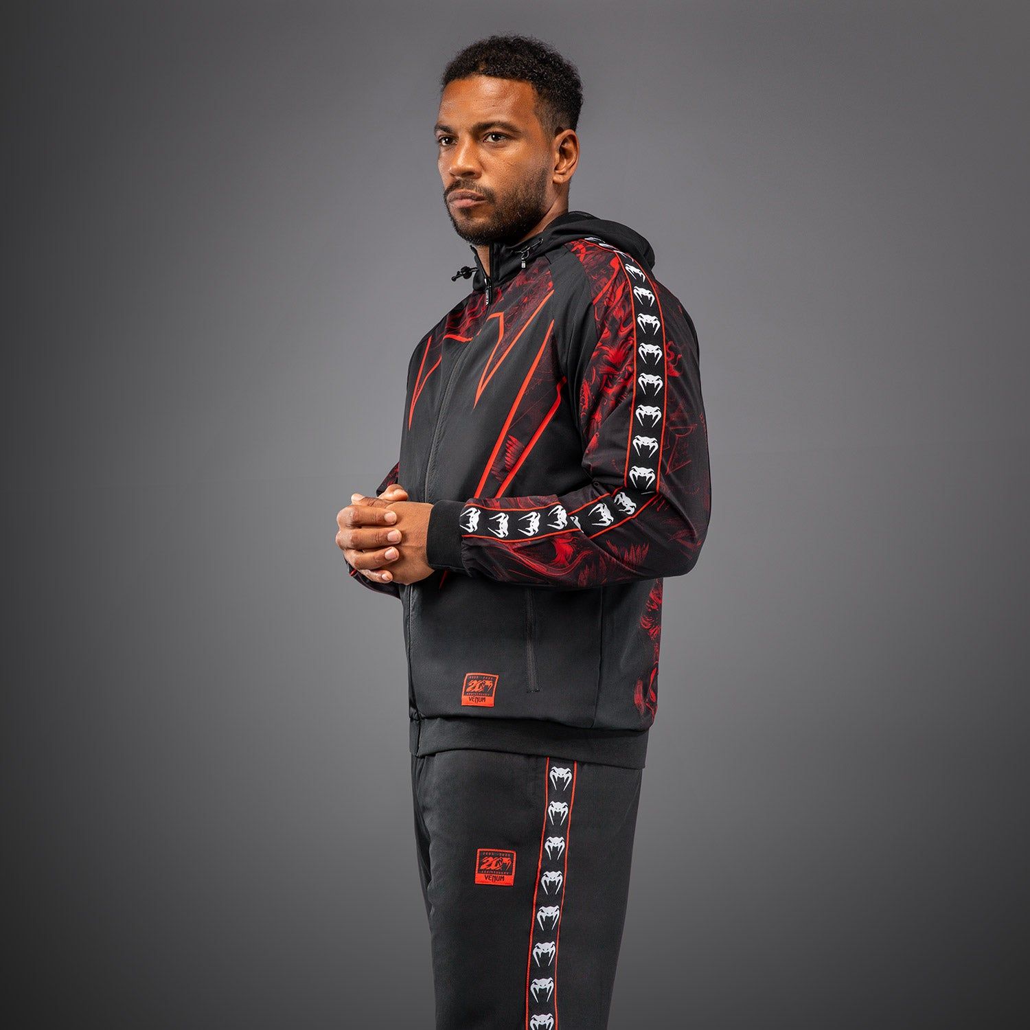 VENUM 20th Anniversary 运动夹克采用高性能面料制成,全拉链设计,既可作为健身房的额外保暖层,亦适合作为凉爽天气的运动着装。可调节兜帽、开放式口袋与高领设计增添实用细节。