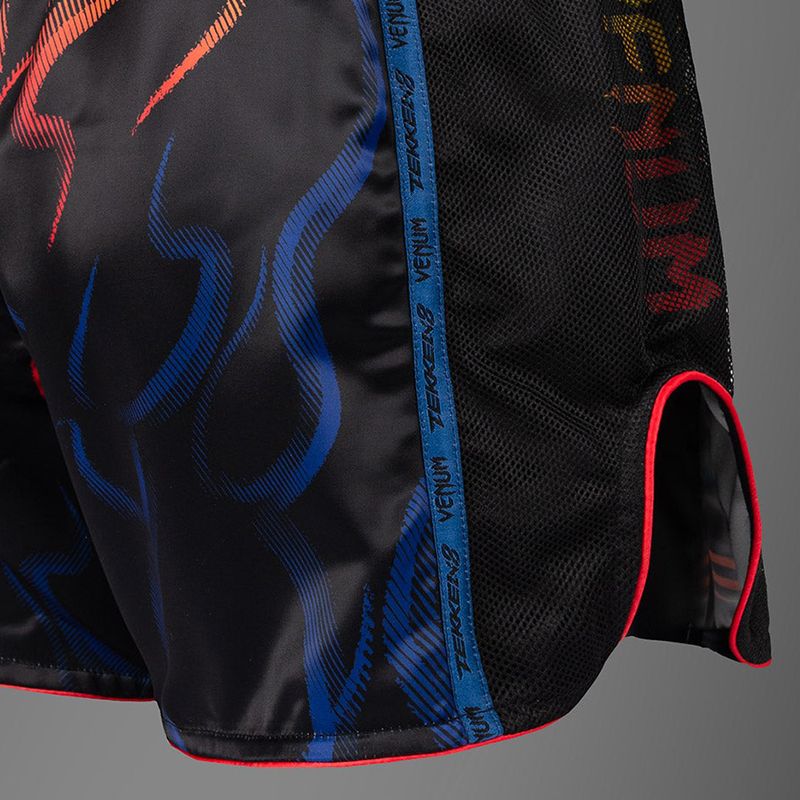 VENUM x TEKKEN 8 泰拳短裤 - Yoshimitsu采用轻量化设计,侧边开衩结构确保擂台上的自由灵动。传统腰带搭配弹性防滑支撑,透气网眼拼接助您在激烈训练中保持干爽。其设计彰显了Yoshimitsu的机械忍者美学。