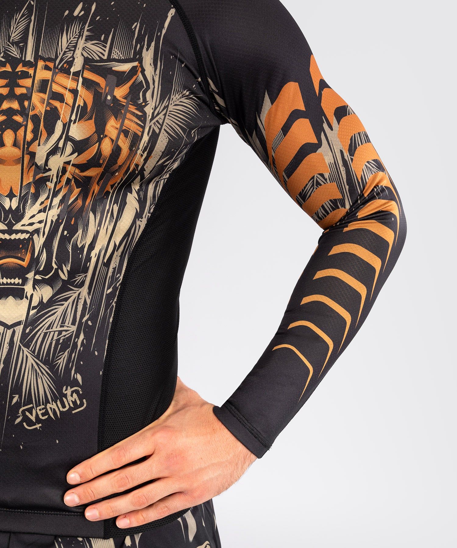 VENUM Tiger 男士长袖紧身衣是格斗、BJJ和MMA的理想之选。它的设计旨在提供保护,防止皮疹、灼伤和擦伤,同时让您在击打和地面训练中行动自由。VENUM Tiger 男士长袖紧身衣就像运动员的“第二层皮肤”,压缩面料可在高强度训练时提供支撑,并有助于肌肉恢复。