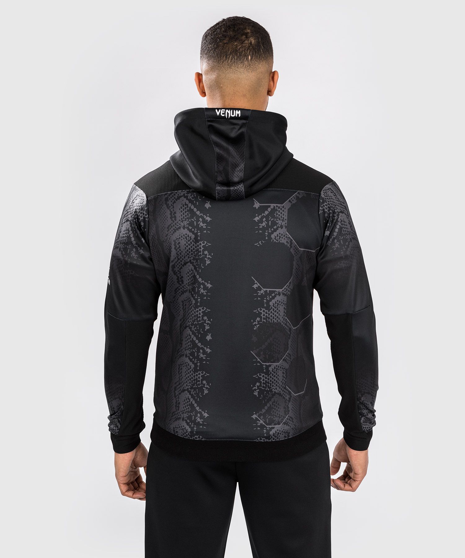 UFC Adrenaline | VENUM Authentic Fight Night 男士出场外套有两个侧拉链口袋,以及附带可调节抽绳的网眼内衬兜帽。腕部和手臂内侧采用优质弹力面料,让运动员无需解开手套即可脱下外套。