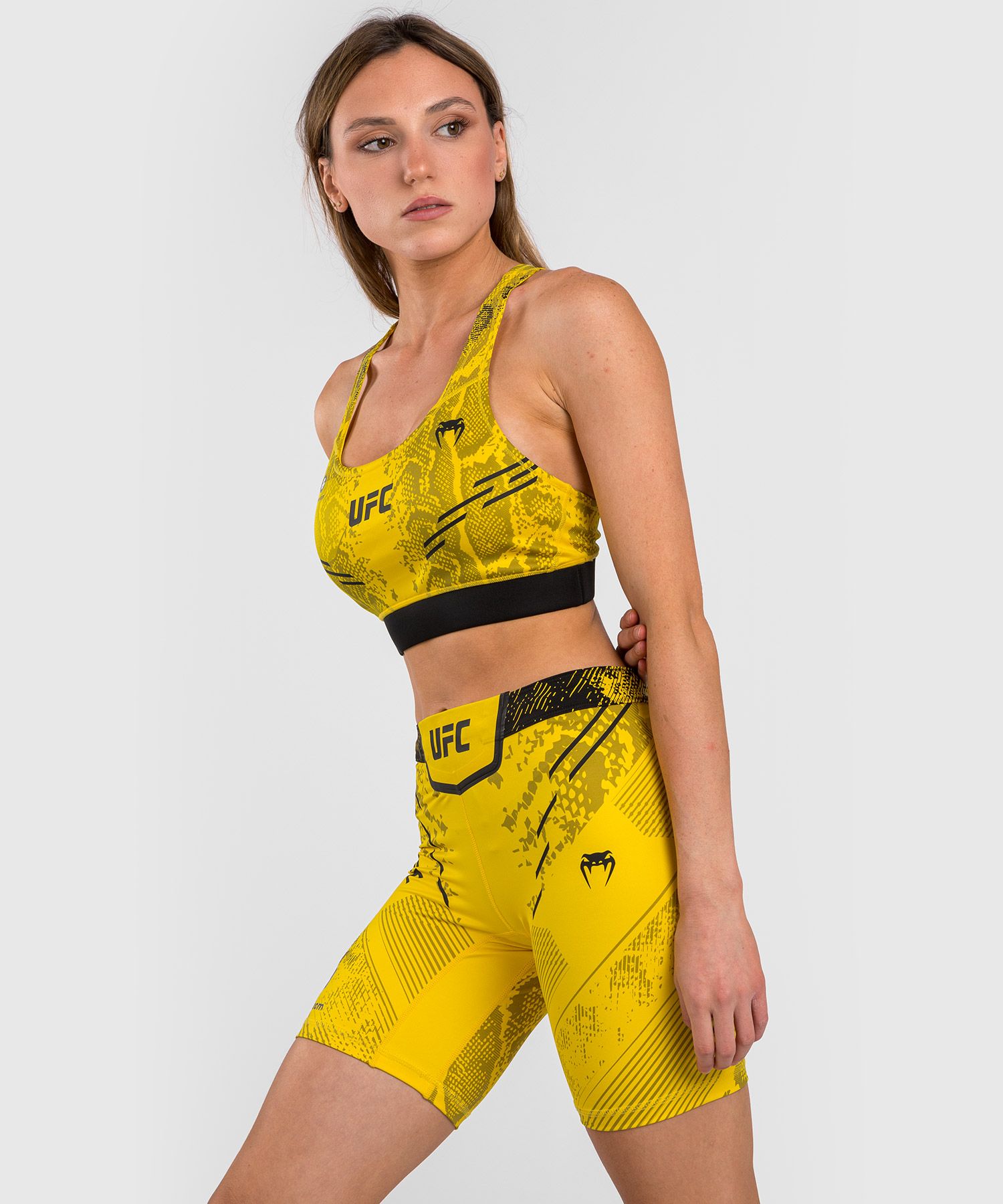 这款女士紧身短款是 VENUM和UFC最新推出的高能量系列服饰 — UFC Adrenaline | VENUM。其宗旨是让参加UFC格斗比赛的运动员像战士一样奋战。
