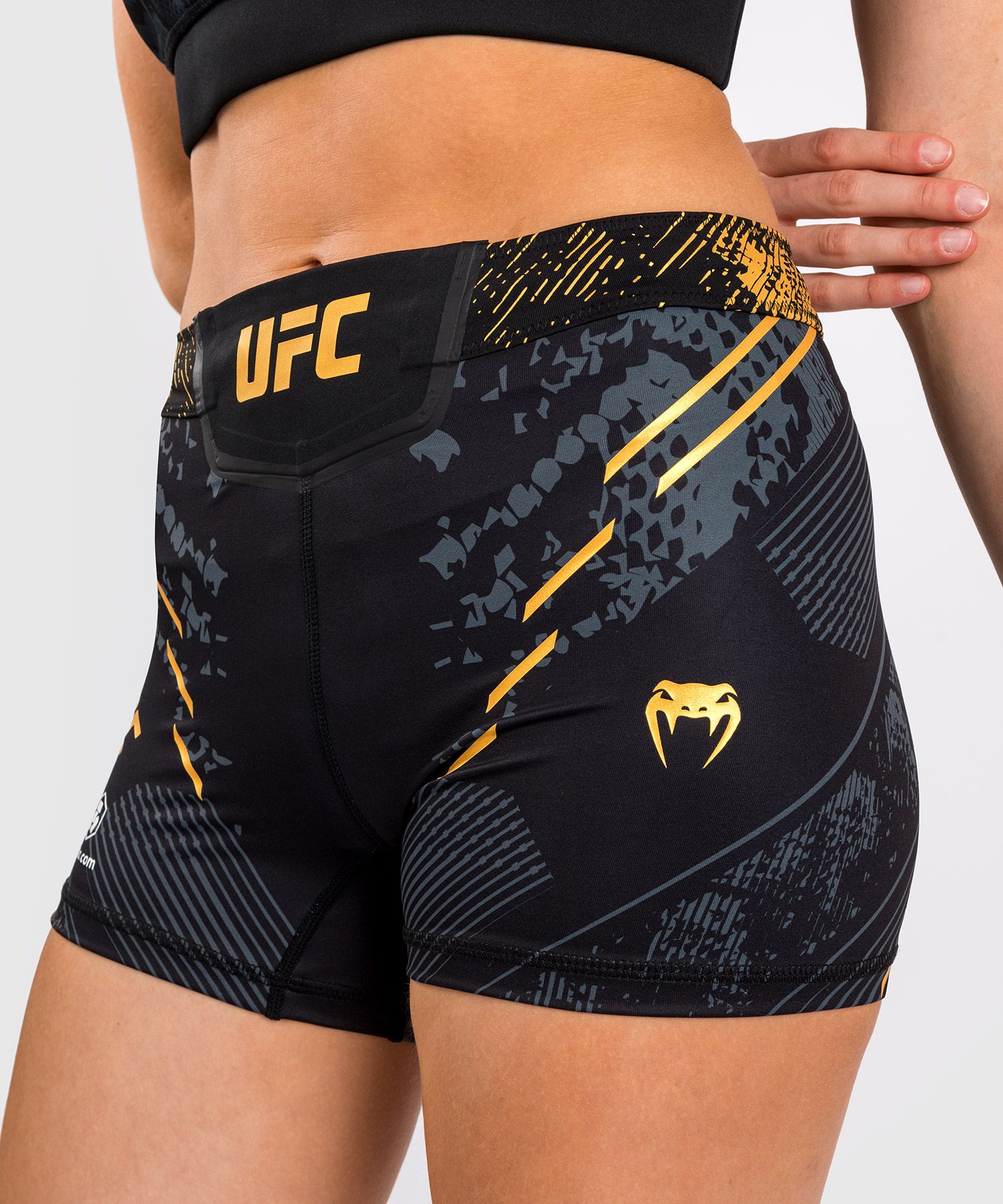 这款女士紧身短款是 VENUM和UFC最新推出的高能量系列服饰 — UFC Adrenaline | VENUM。其宗旨是让参加UFC格斗比赛的运动员像战士一样奋战。