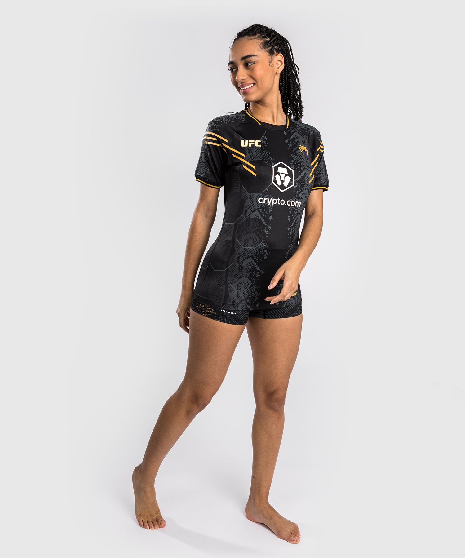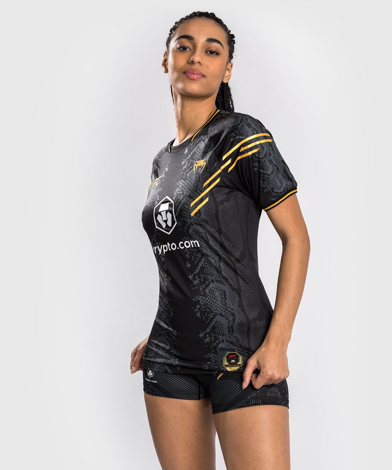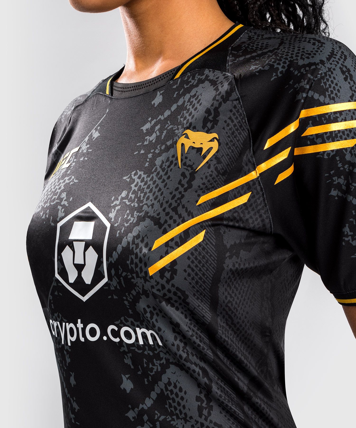 UFC Adrenaline | VENUM系列女士出场速干T恤有三种颜色可供选择,可与同系列的卫裤、外套完美搭配,打造整体造型感。