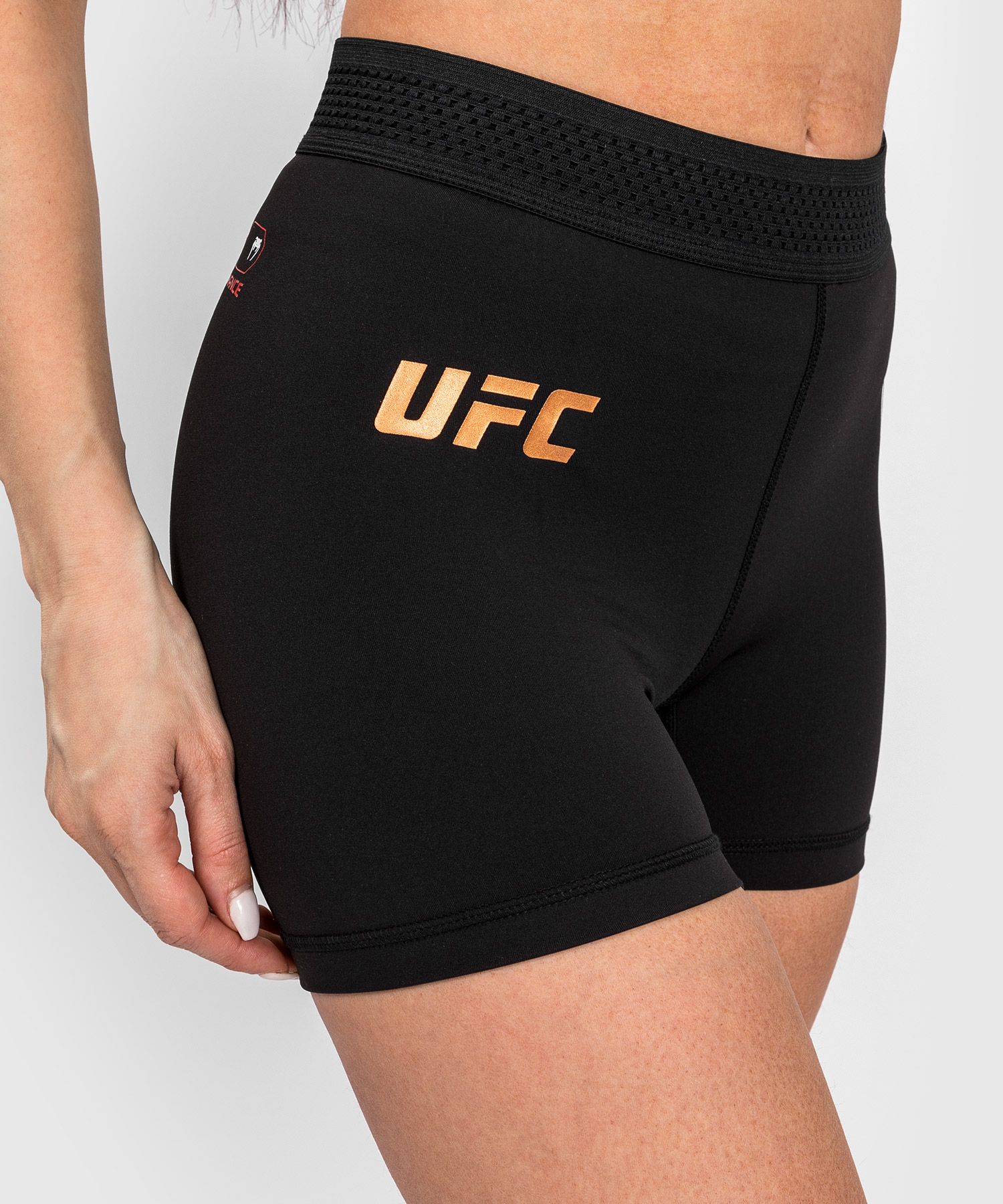 这款紧身短裤的设计灵感来源于八角笼中随时准备进攻和反击的运动员,铜色、红白相间的VNUM和UFC标志细节,是对“格斗周”肾上腺素飙升体验的致敬。