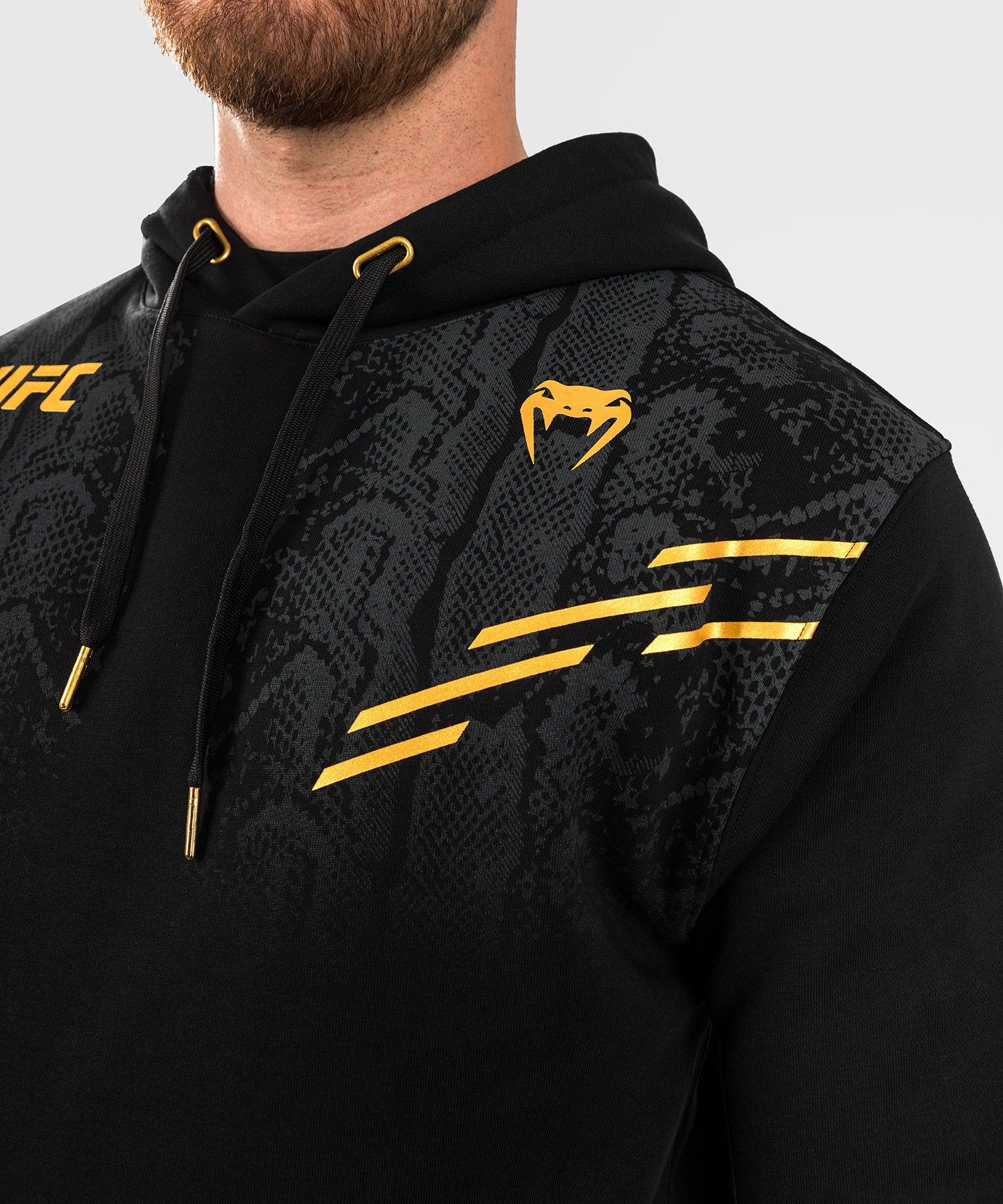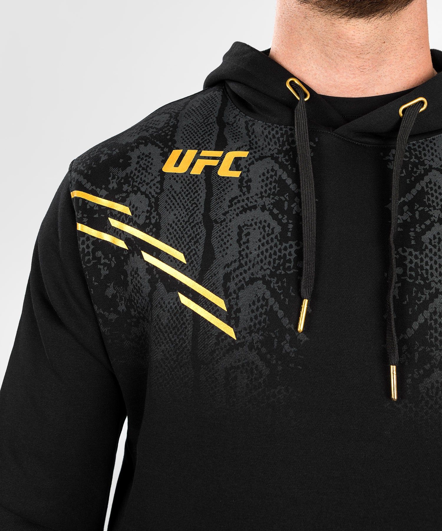 UFC Adrenaline | VENUM系列男士连帽卫衣有两种颜色可供选择,可与同系列的T恤、卫裤完美搭配,打造整体造型感。