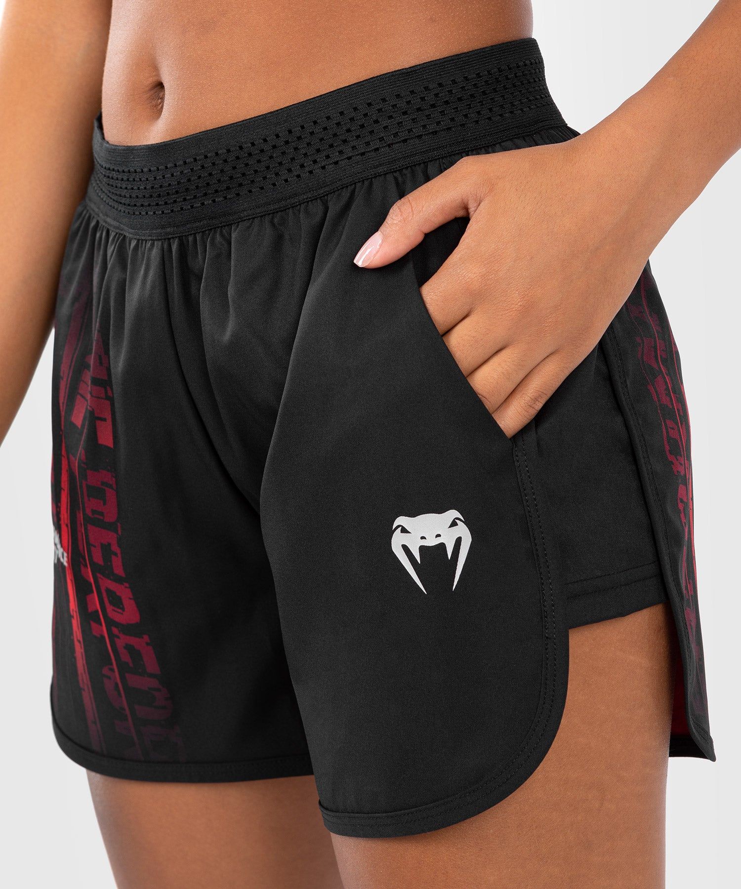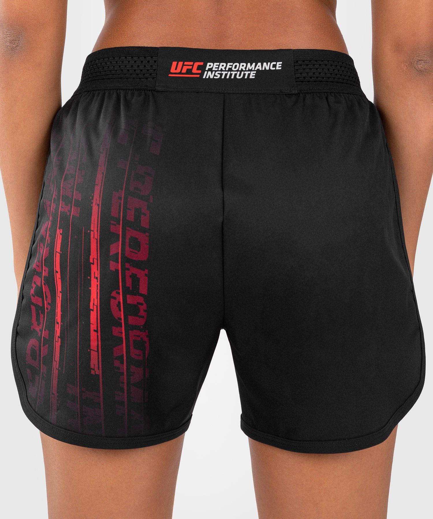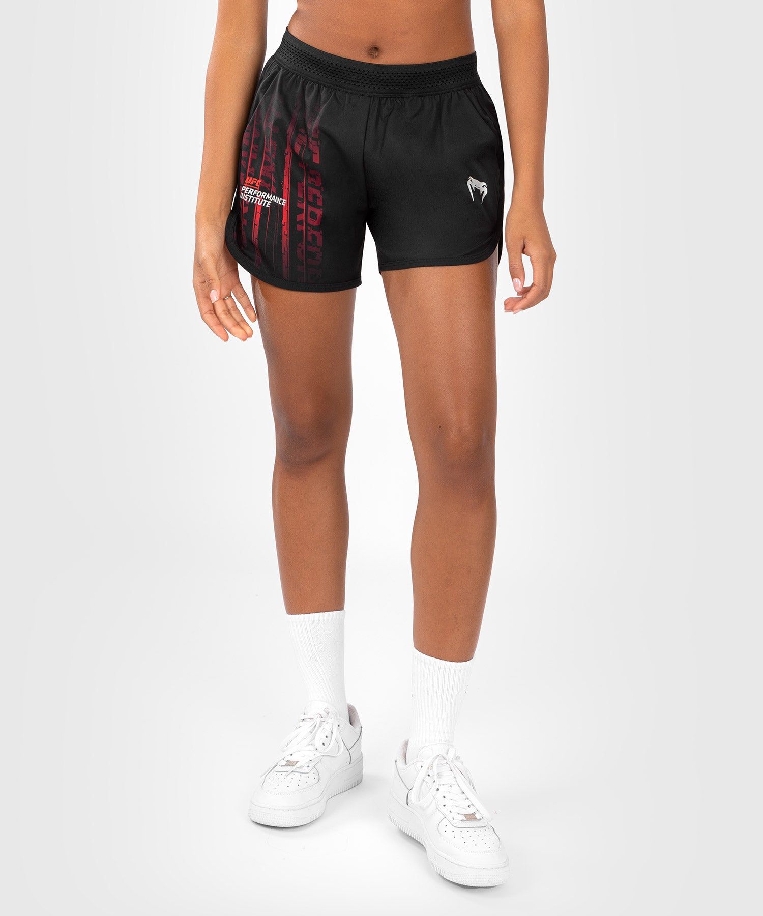 这款训练短裤右腿处印有该系列充满活力的红白图案设计,腿部则印有 UFC Performance Institute 和 VENUM徽标。