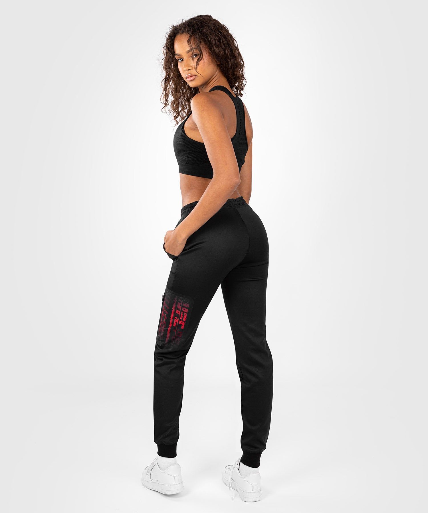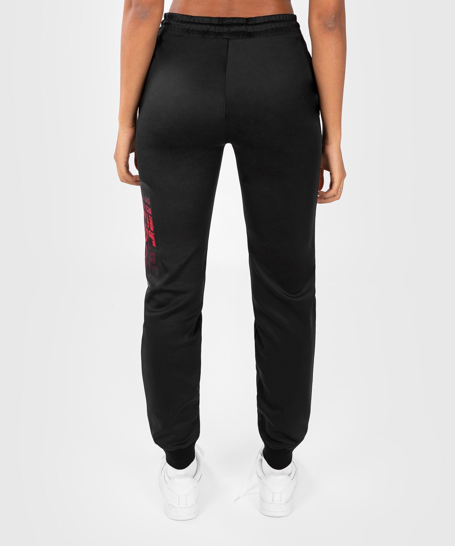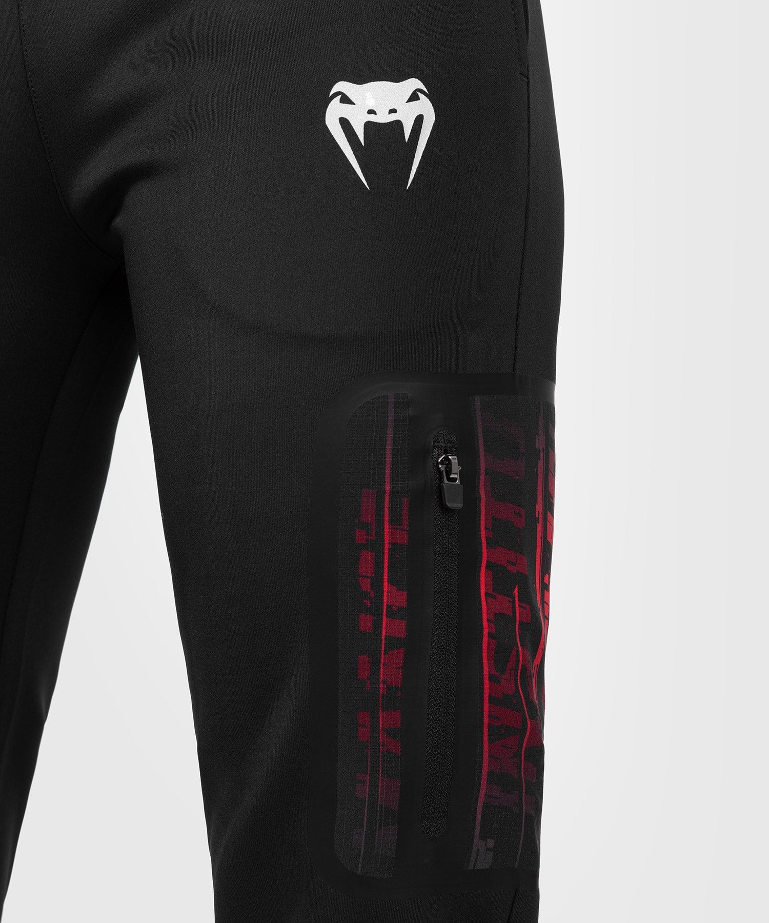 这条黑色优质卫裤的左裤腿处印有该系列的动态图案设计,腿部印有 UFC Performance Institute和 VENUM的标识。腰部对比鲜明的红色抽绳为裤子增添了一抹亮色。
