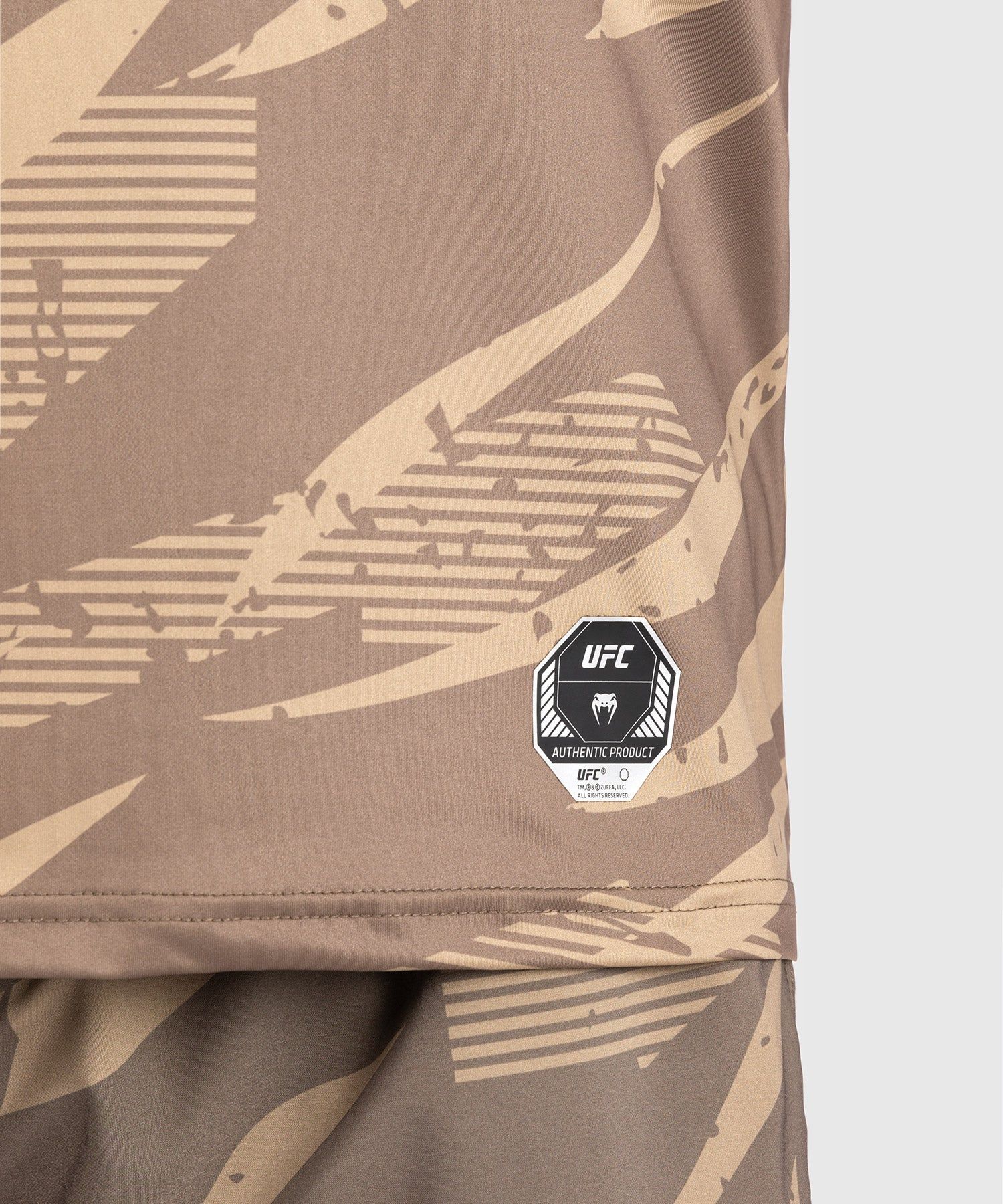 这款短袖采用 Dry-Tech面料,即使在最激烈的训练中,您也能保持舒适凉爽。其大胆的迷彩印花,带有青铜色的Venum和UFC徽标,灵感来自于步入八角笼的运动员,随时准备出击和反击。