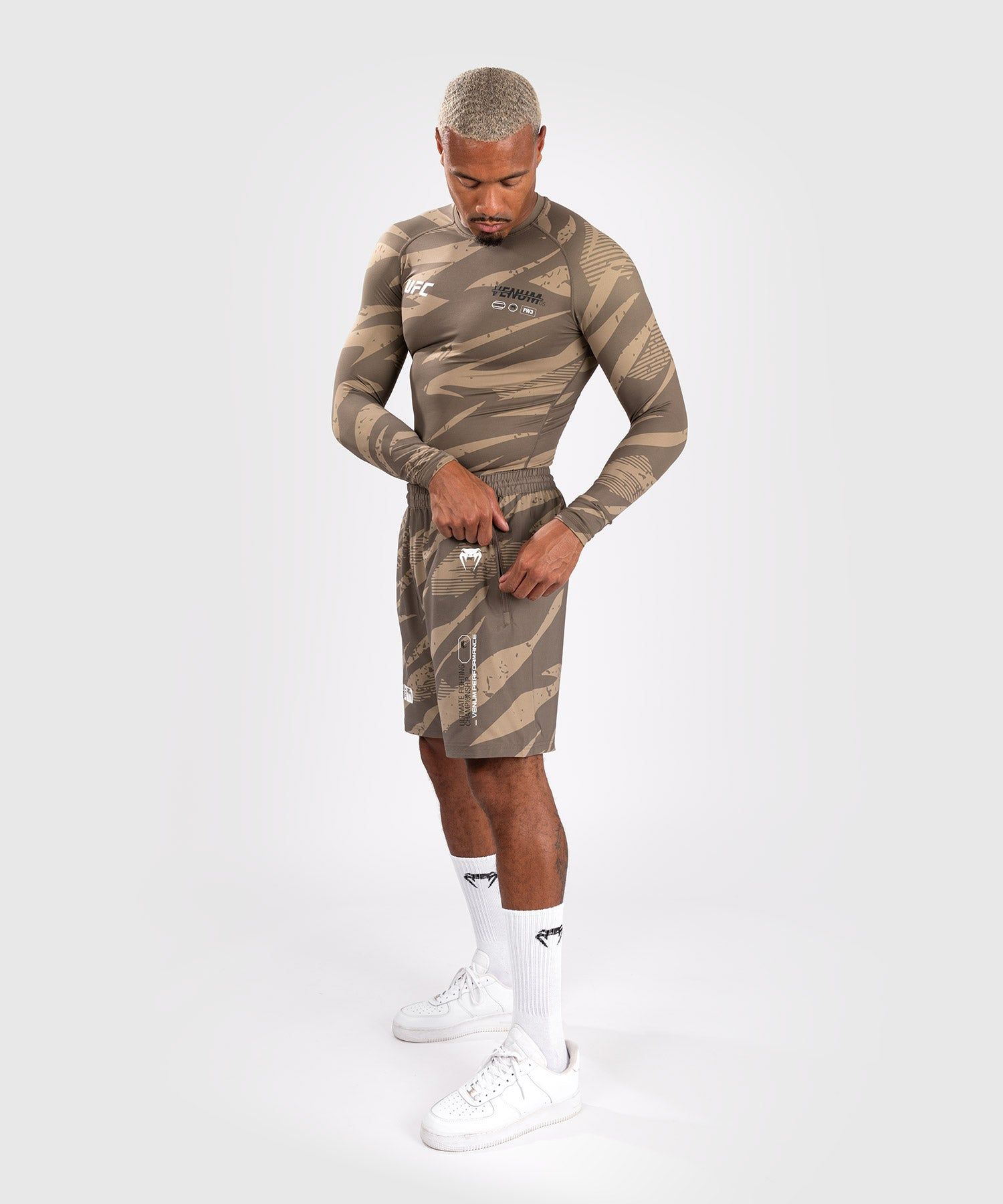 这款男士高性能短裤是 Venum 和终极格斗锦标赛(UFC)新推出的高性能系列的一部分。UFC Adrenaline by Venum 系列采用耐磨的高性能面料和体贴的细节设计,以便在格斗周和格斗之夜期间与UFC运动员保持同步。