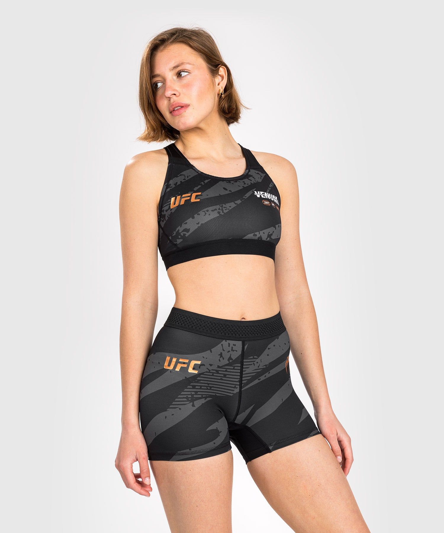 这款女士紧身短裤是 Venum 和终极格斗锦标赛(UFC)新推出的高性能系列服饰 — UFC Adrenaline by Venum 系列采用耐磨的高性能面料和周到的细节设计,在格斗周和格斗之夜期间与UFC运动员保持同步。