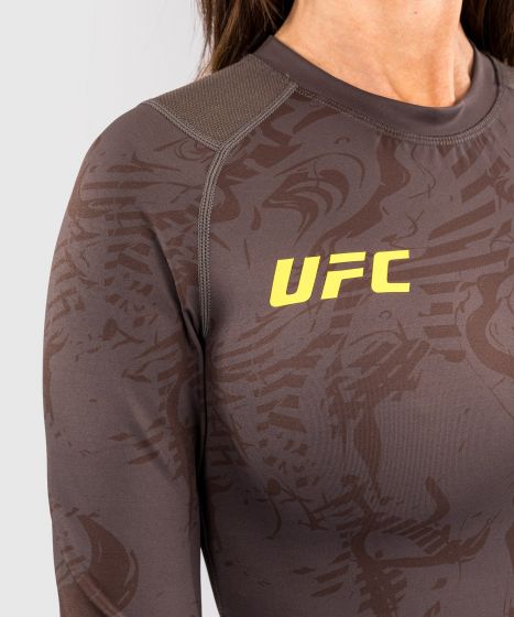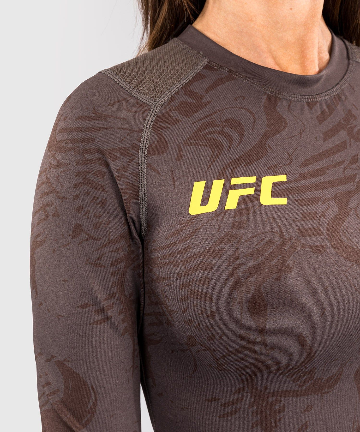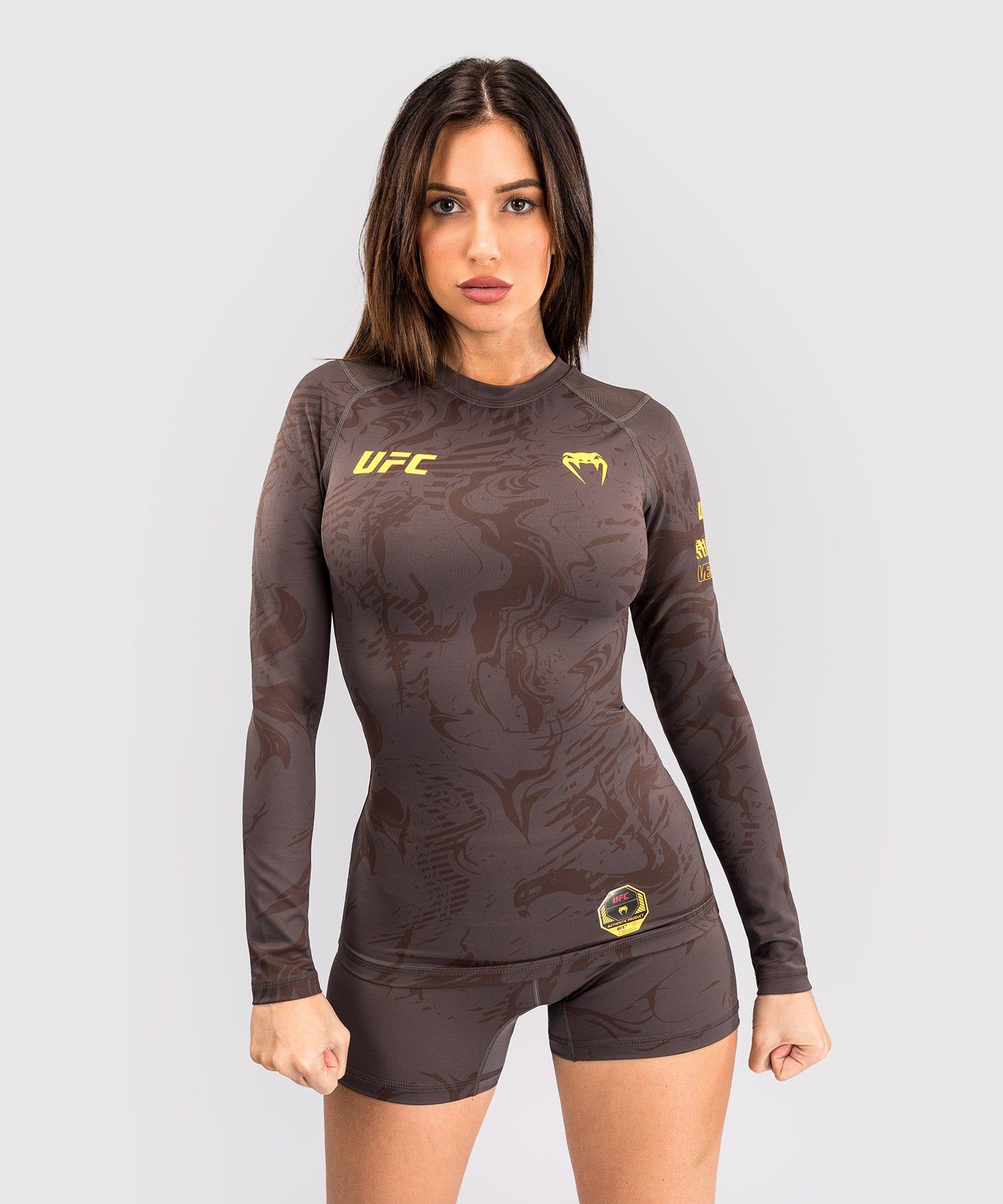 UFC Fusion | VENUM 格斗周女士高性能长袖紧身衣就像运动员的“第二层”皮肤,在柔术格斗过程中为运动员提供保护,防止其受伤,并使其活动自如。