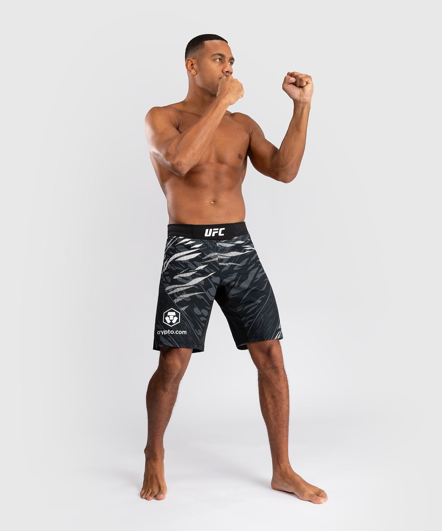 UFC Fusion | VENUM 格斗之夜 长款格斗短裤专为活动性和舒适性而设计,采用热粘合侧开衩设计,让运动员在站立和地面训练时活动更加自如。其面料轻便、耐用且富有弹性,腰部的松紧带设计可确保安全,是格斗运动的理想短裤
