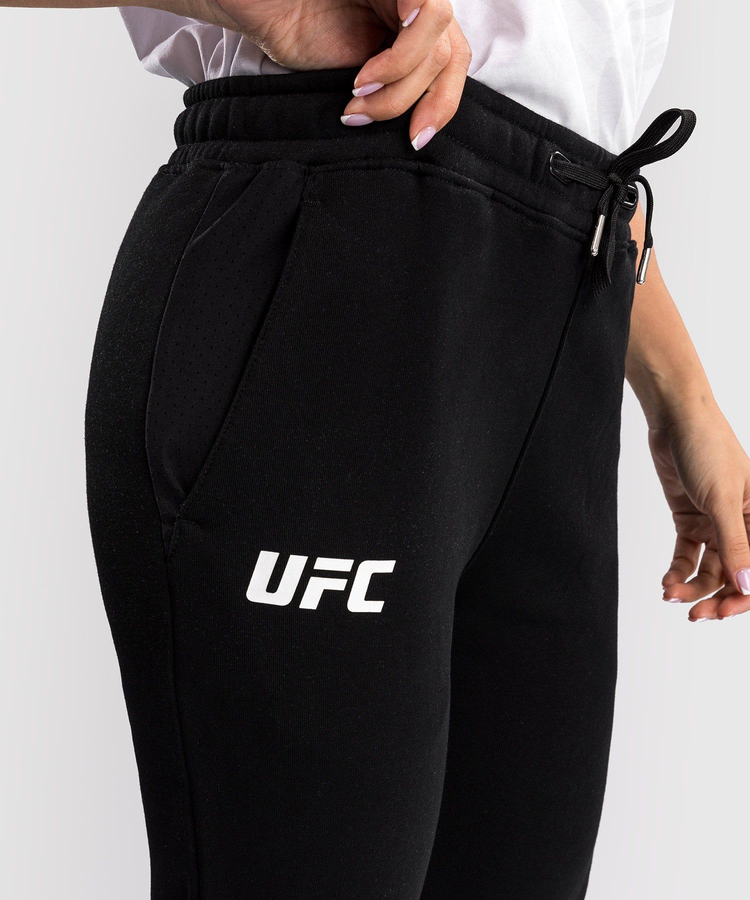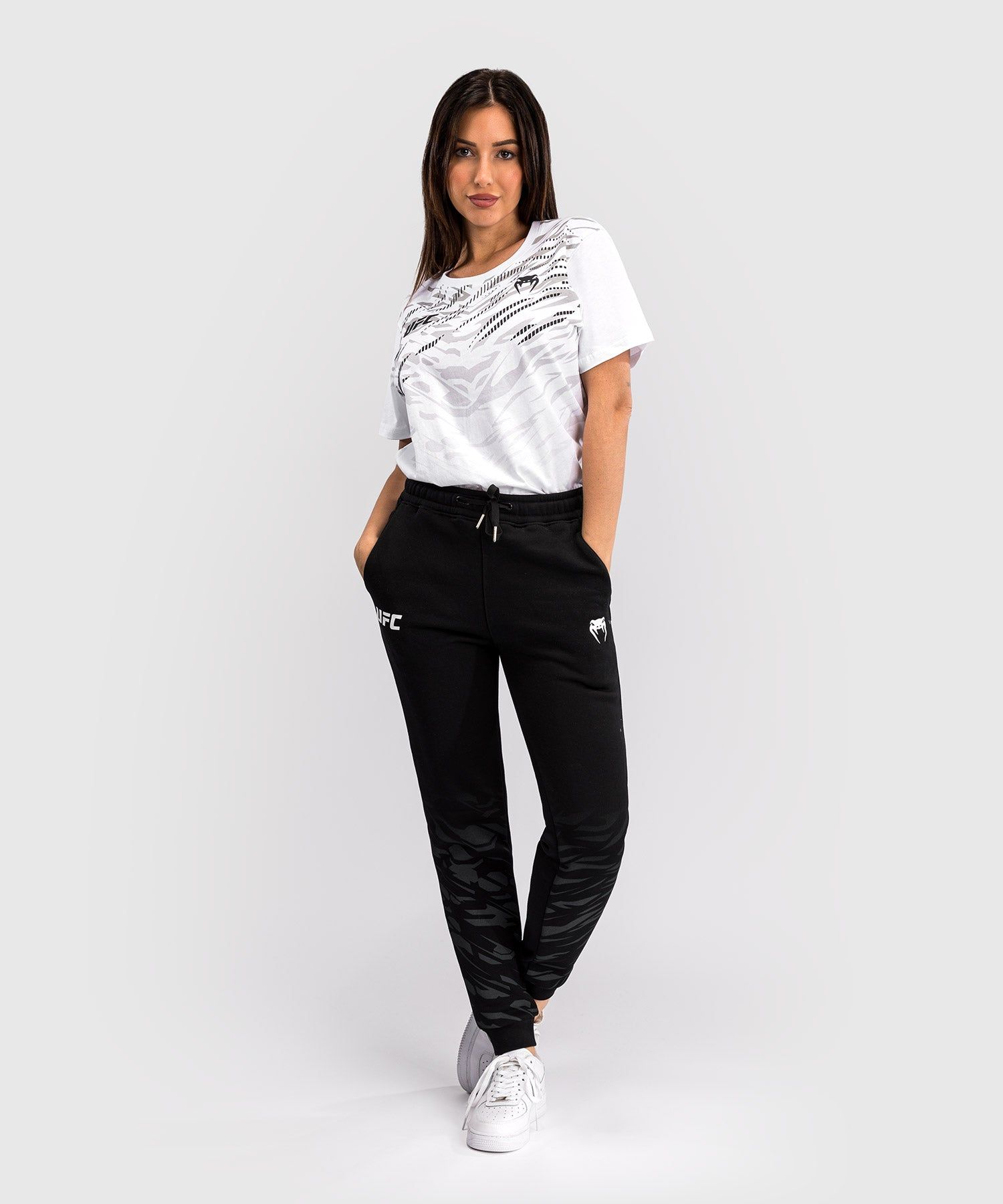 UFC Fusion | VENUM经典复刻系列女士卫裤采用开放式侧袋和抽绳腰带,剪裁舒适。这款卫裤以生活方式为灵感为您的运动提供了更佳的自由度。臀部的VENUM和 UFC 徽标细节为裤子增添了亮点。
