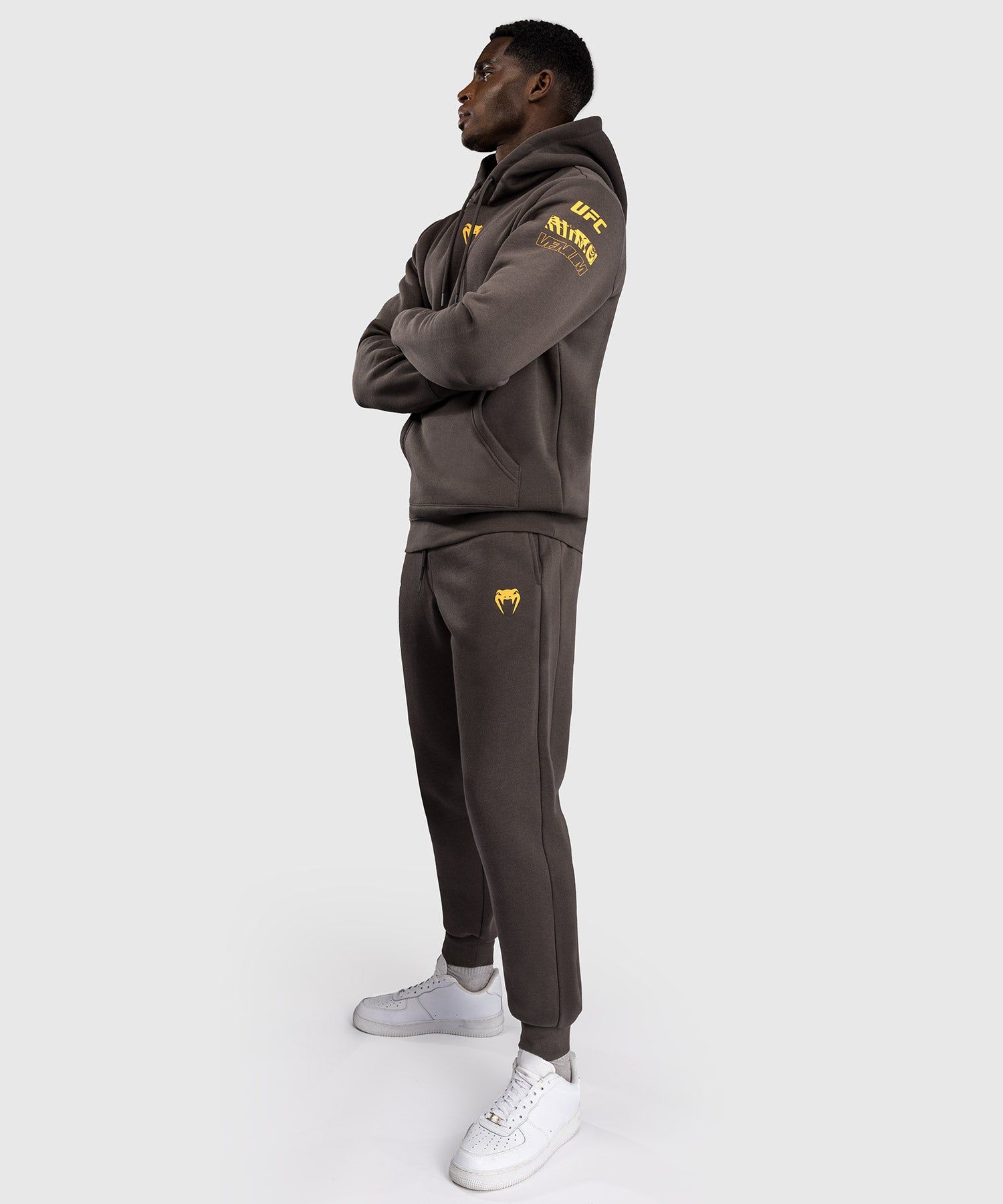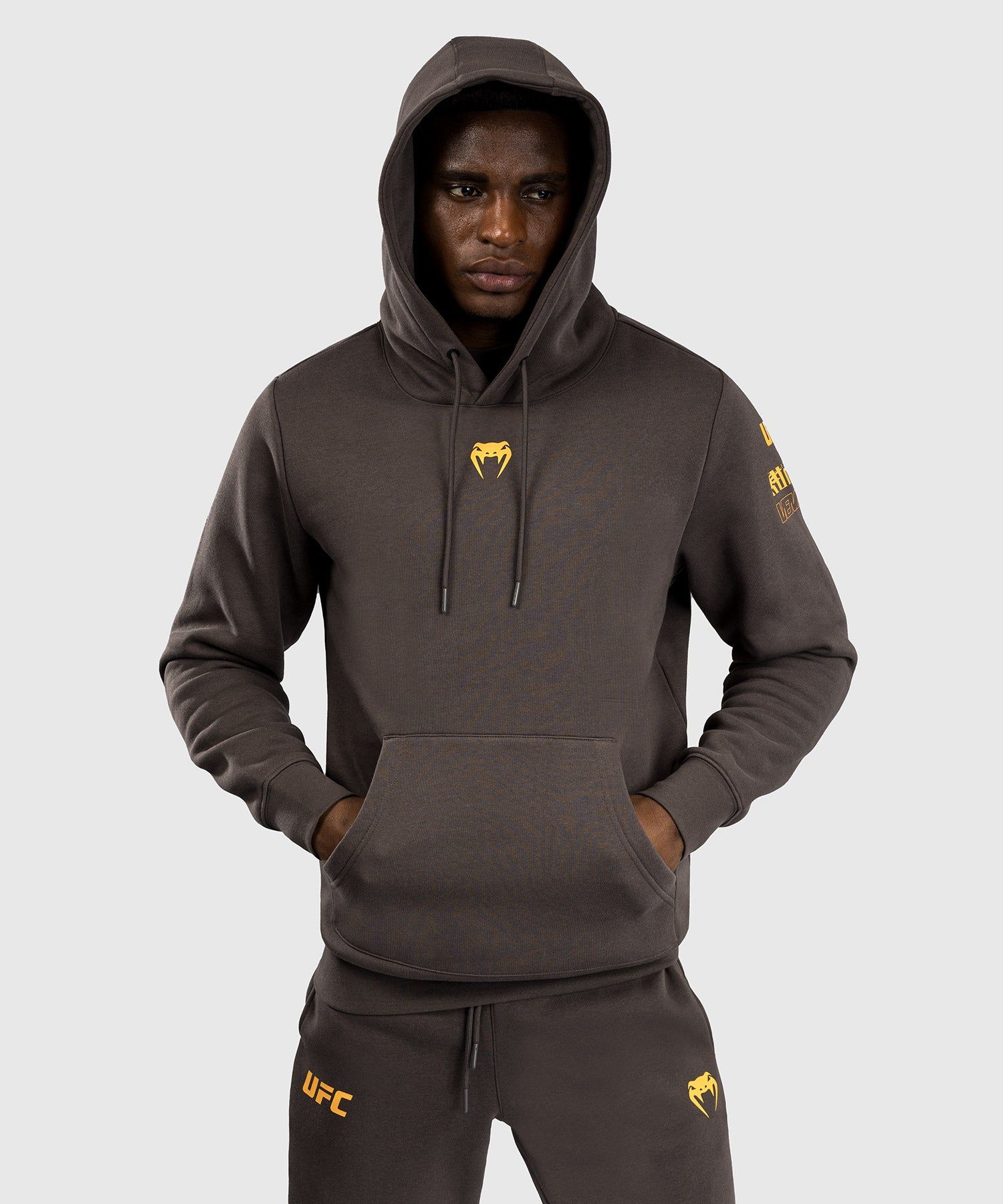 UFC Fusion | VENUM 格斗周男士套头卫衣的胸前、左臂和右肩后部印有鲜明的印花Logo。袋鼠式前袋和抽绳兜帽也为这款连帽衫增加了些许设计感。