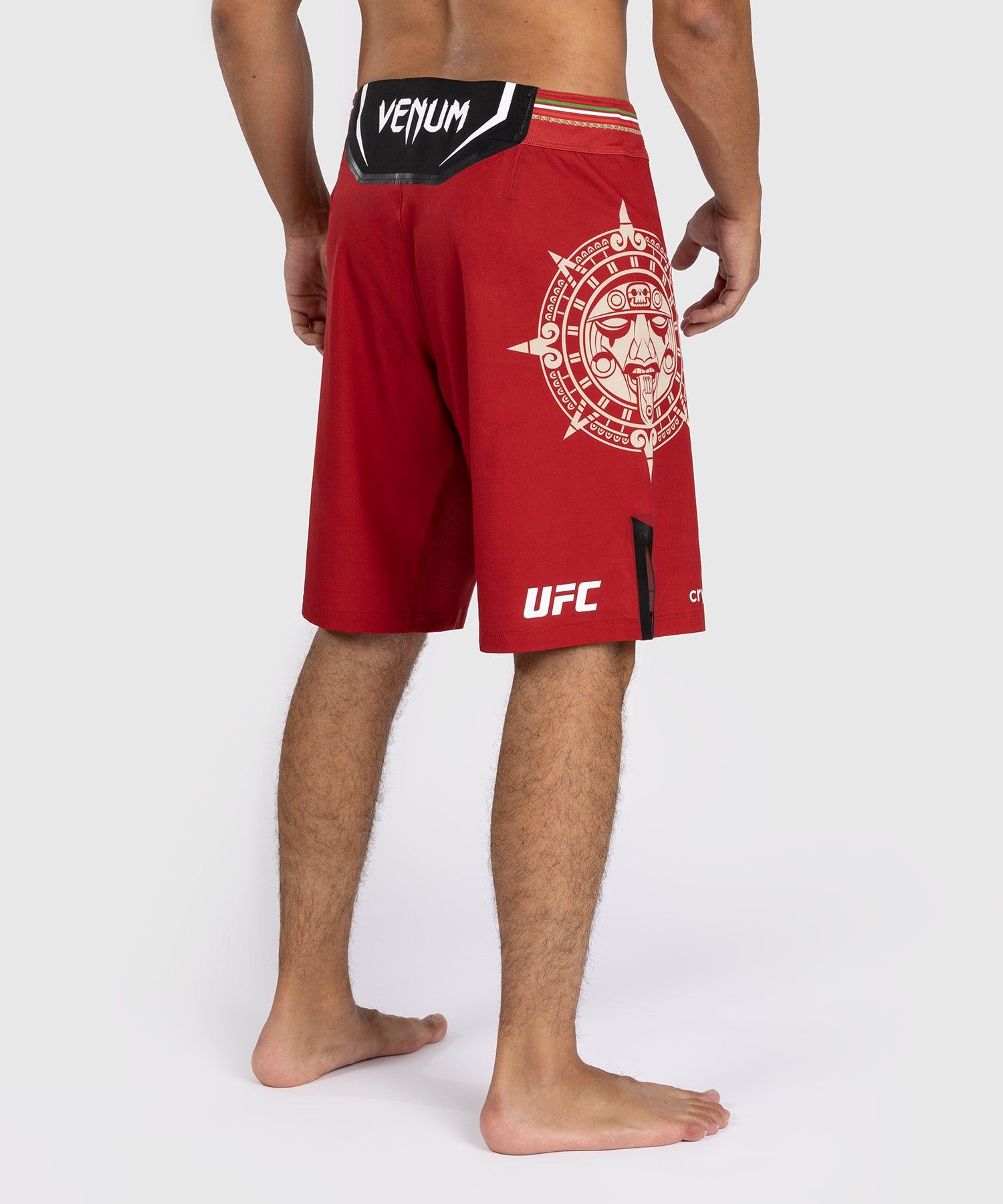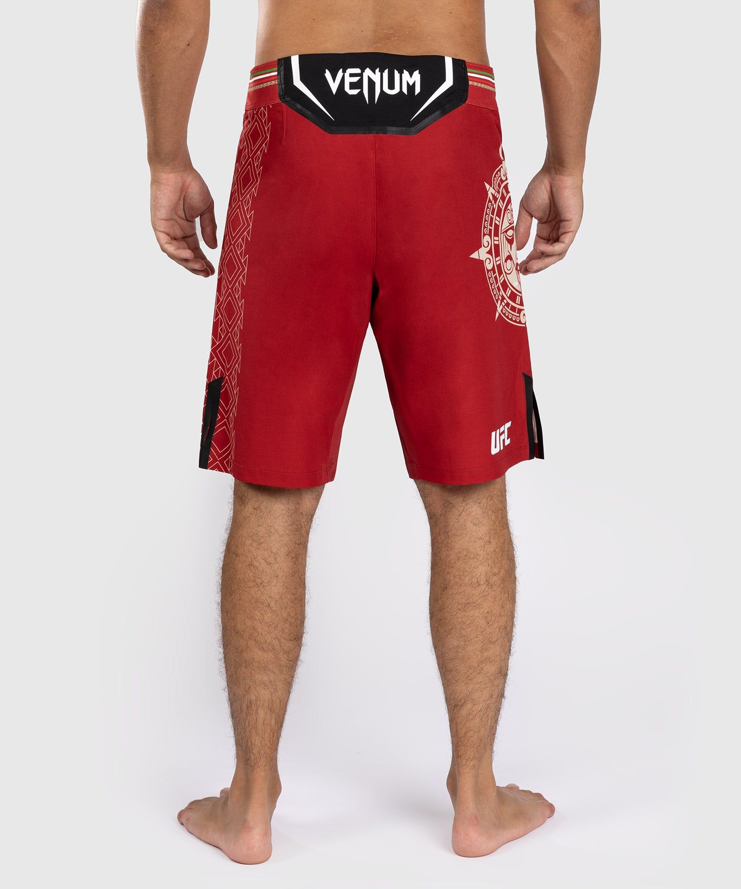 Noche UFC | VENUM男士格斗短裤采用太阳石图案,展示了阿兹特克昼夜之神 Tōnatiuh 的复杂头饰。短裤面料轻便、耐用、柔韧,腰部松紧带确保贴身,是格斗运动的理想之选。