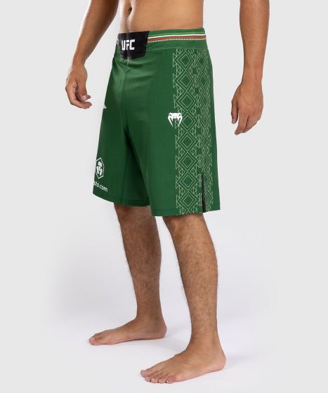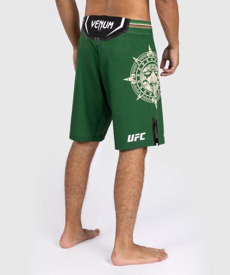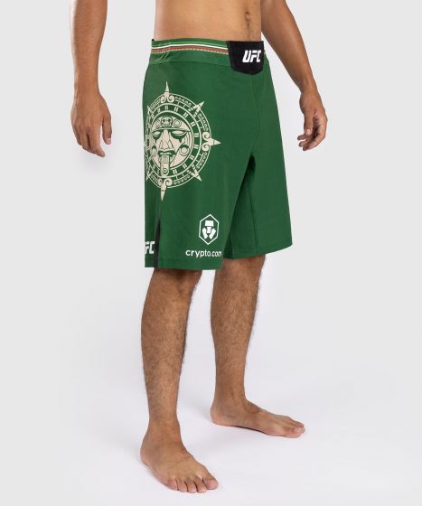 Noche UFC | VENUM男士格斗短裤采用太阳石图案,展示了阿兹特克昼夜之神 Tōnatiuh 的复杂头饰。短裤面料轻便、耐用、柔韧,腰部松紧带确保贴身,是格斗运动的理想之选。