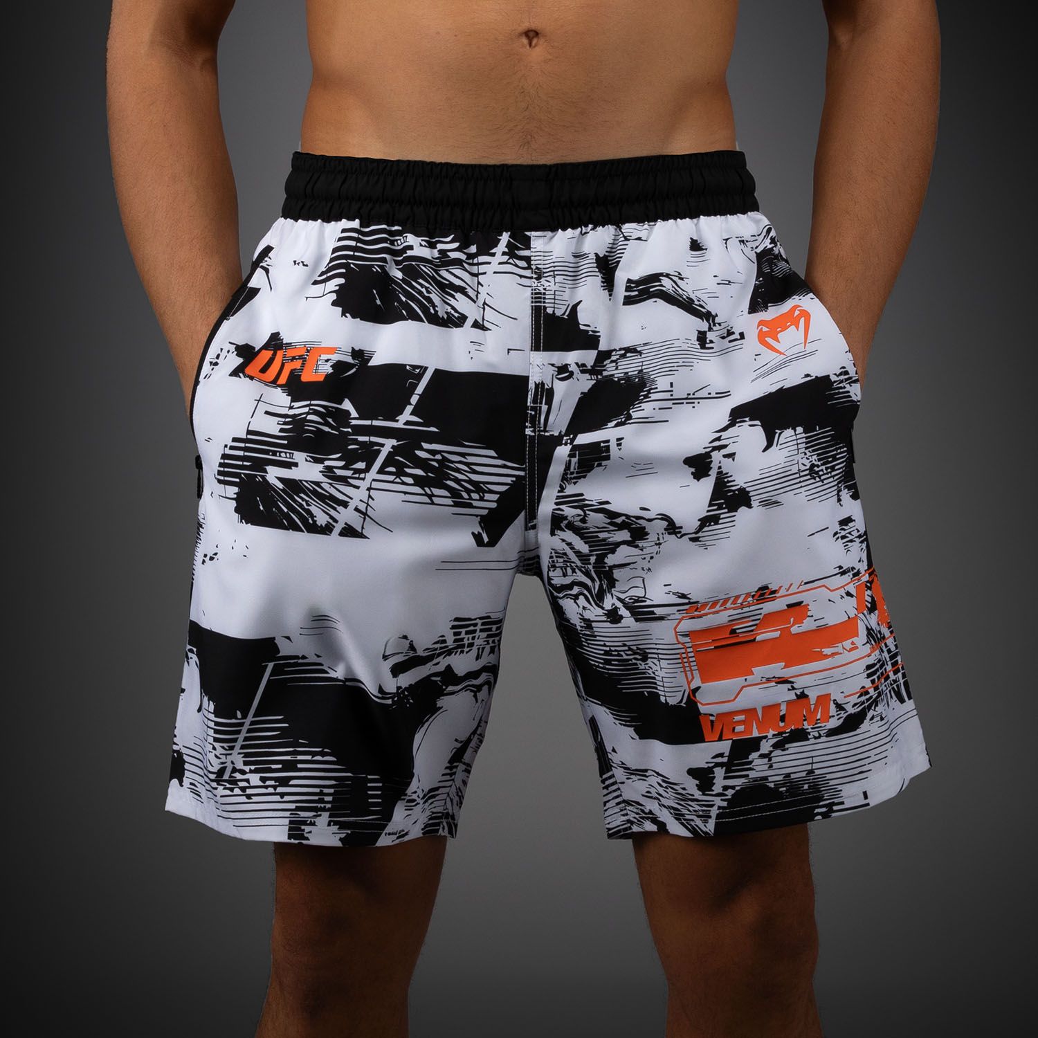 VENUM UFC Zenith 格斗周 男士训练短裤专为训练设计,可适配有氧训练、举重及对练场景。弹性腰带提供稳固支撑,修身宽松剪裁确保动作自如。侧边拉链口袋更添精致细节,彰显高端品质。