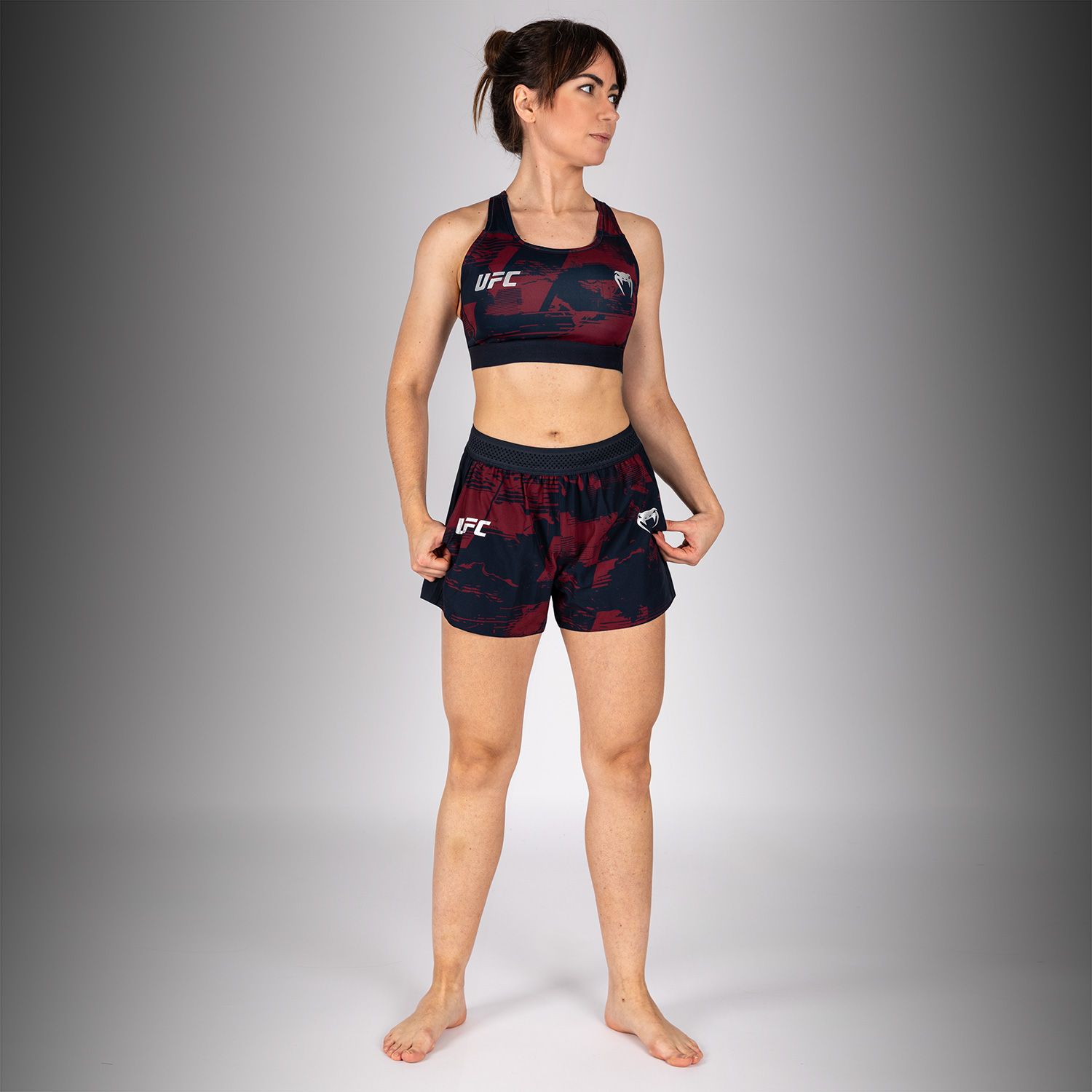 VENUM UFC Zenith 格斗周 女士训练短裤专为训练设计,适配有氧训练、举重及对练场景。弹性腰带提供稳固支撑,修身宽松剪裁确保动作自如。