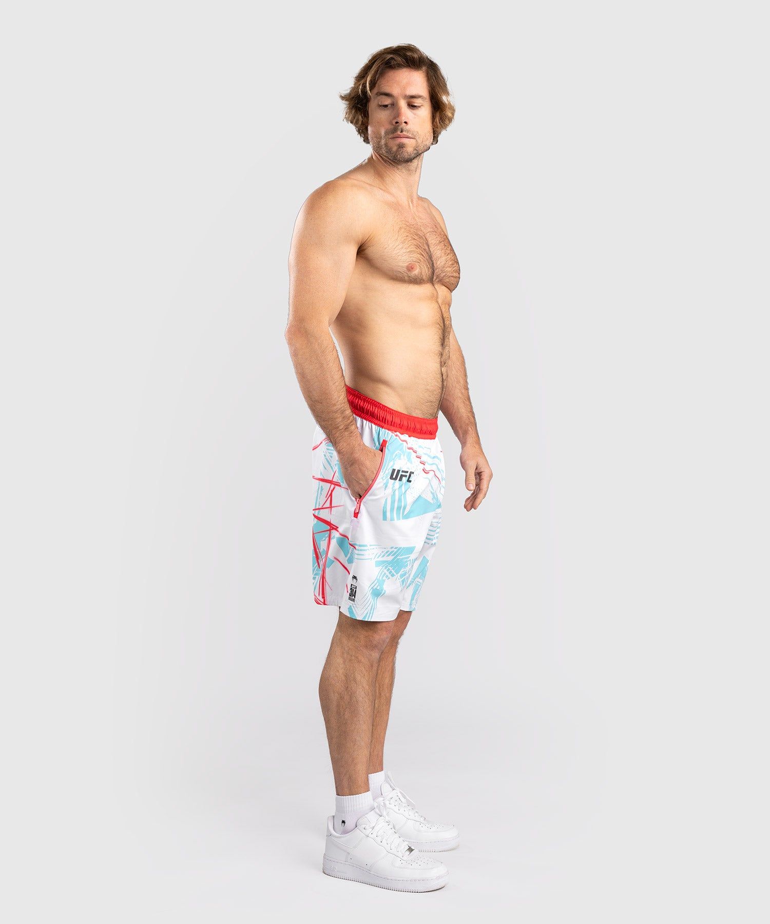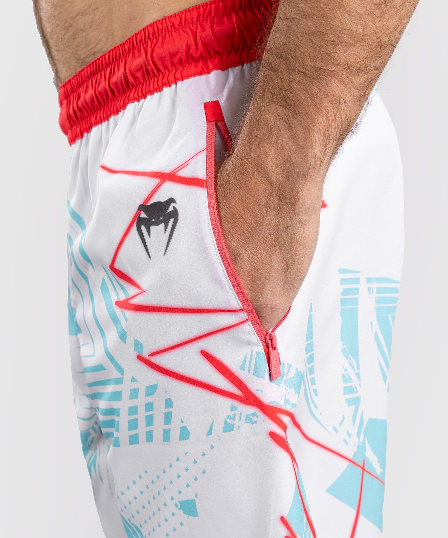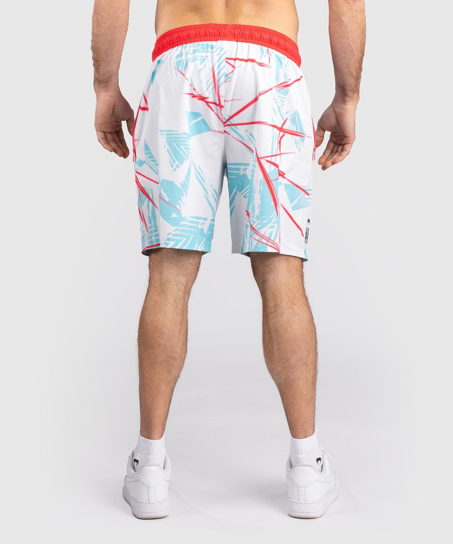UFC Fusion | VENUM Miami Edition 格斗周男士训练短裤专为训练而设计,是有氧运动、举重和搏击的理想选择。弹性腰带具有良好的支撑性,宽松美观的剪裁确保了运动的自由度,拉链侧袋使这款男士短裤更显高档质感。对比鲜明的蓝色和红色线条则捕捉到了迈阿密的热带风情。